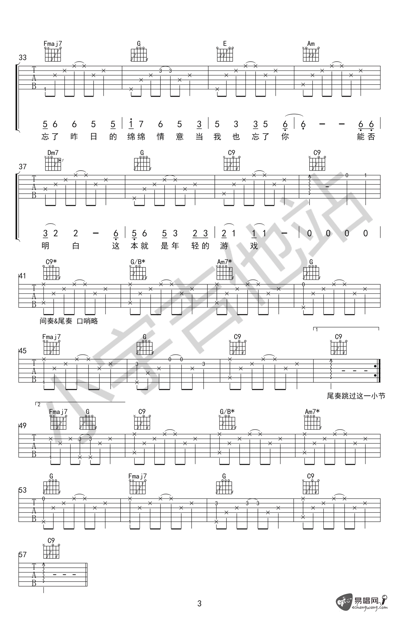 - 我的名字吉他谱 焦迈奇 G调指法 高清弹唱谱