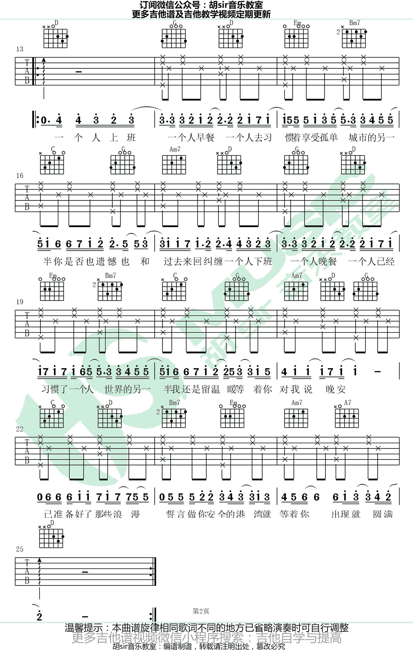 - 陈小姐的话吉他谱 我们的世界很民谣吉他谱 图片谱