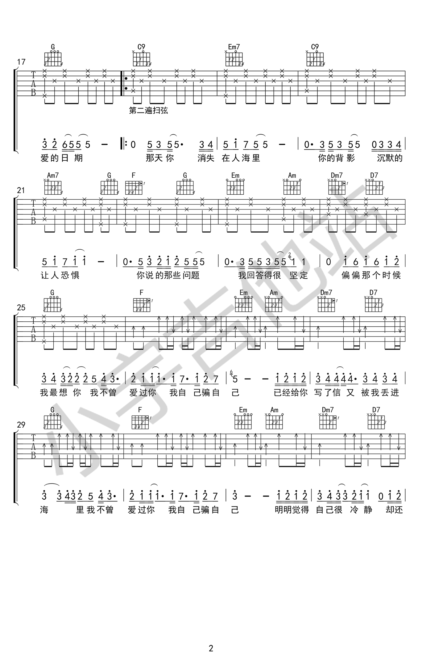 - 陈小姐的话吉他谱 C调指法 高清弹唱谱