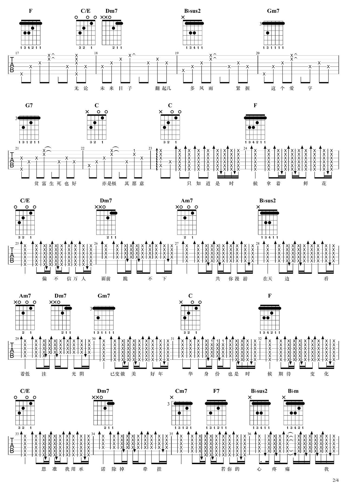 - 一生所爱吉他谱 卢冠廷 高清弹唱谱 大话西游片尾曲
