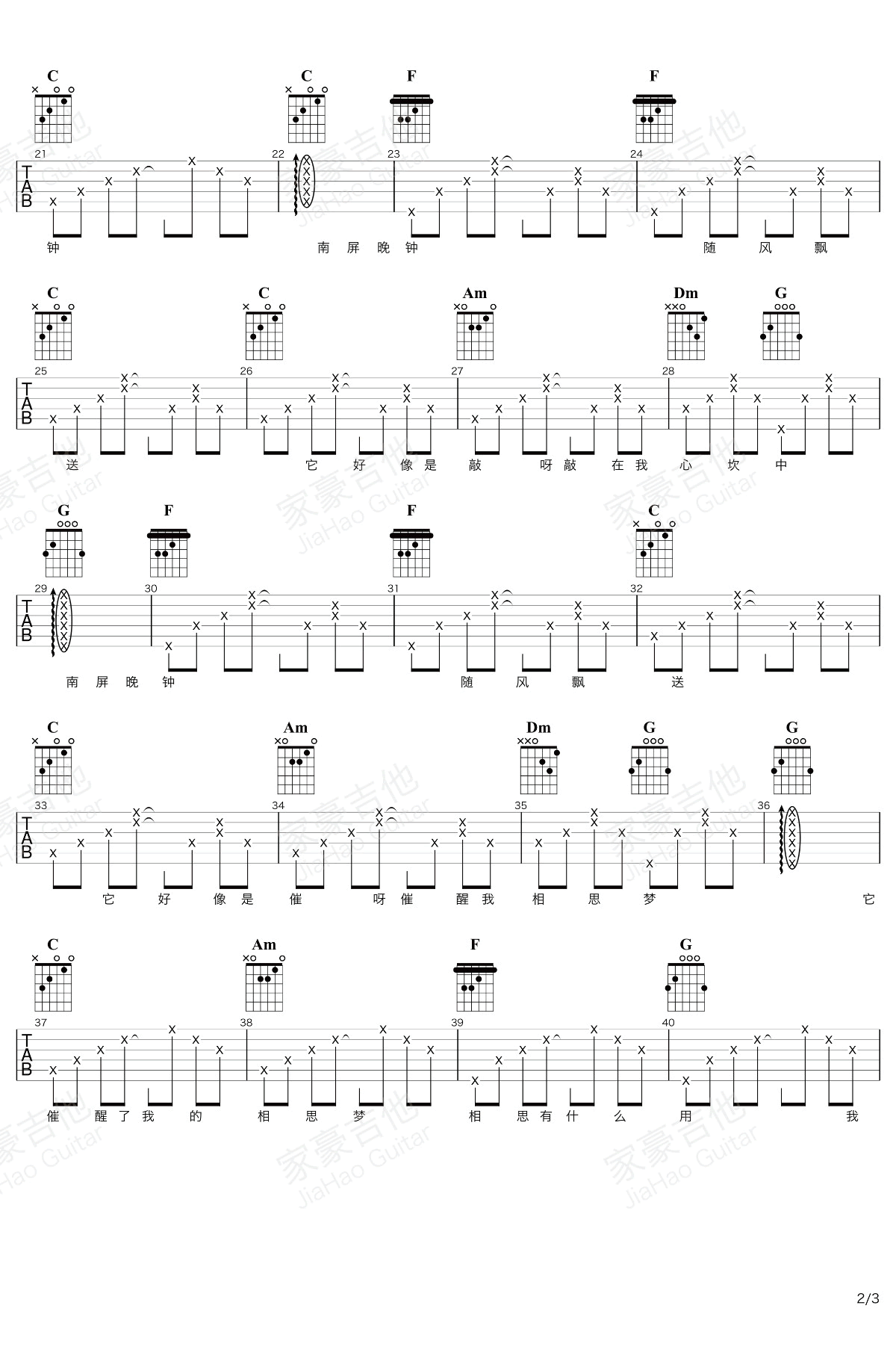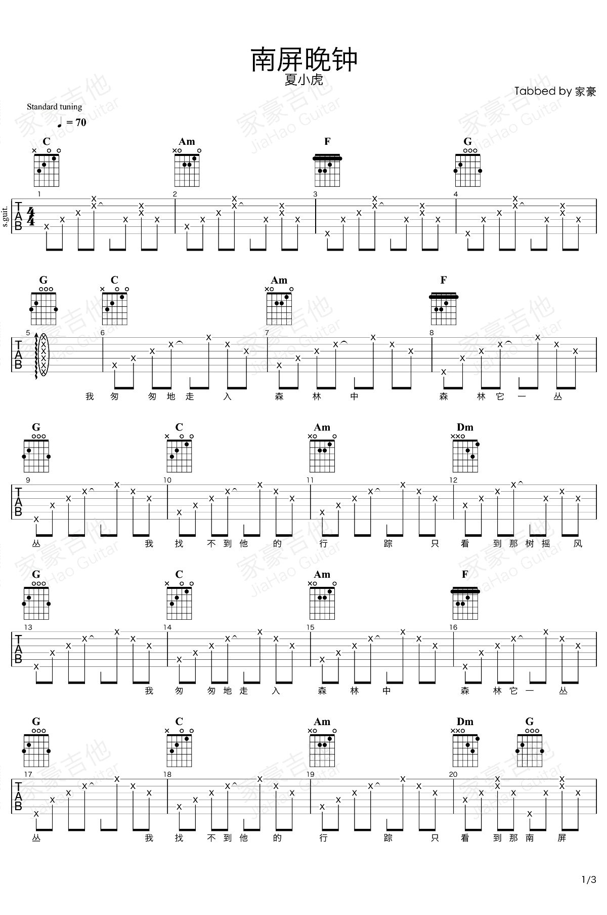 南屏晚钟吉他谱,夏小虎演唱版本,崔萍原唱的一首台湾校园歌曲,《南屏晚钟》六线谱,高清图片谱。感谢家豪吉他的编配和提供,易唱网每日更新,推荐分享。