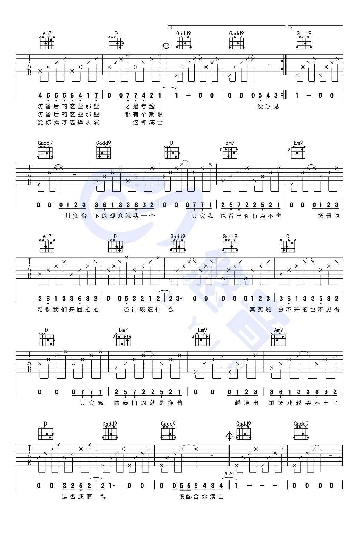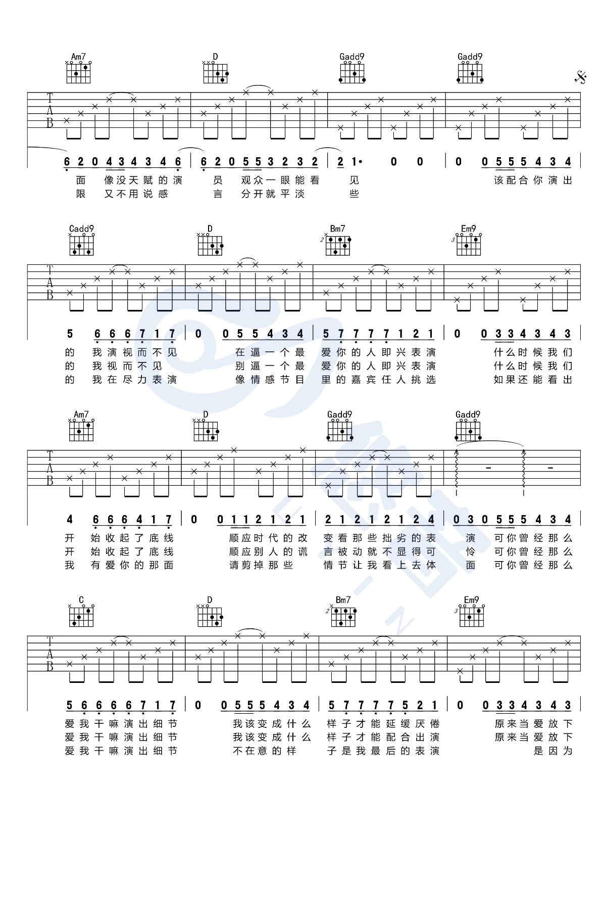 - 薛之谦《演员》吉他谱_G调弹唱谱_吉他演示视频