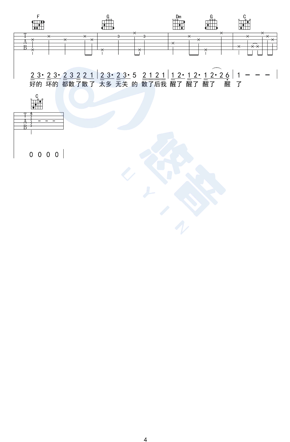 - 薛之谦《天份》吉他谱 C调 高清弹唱谱