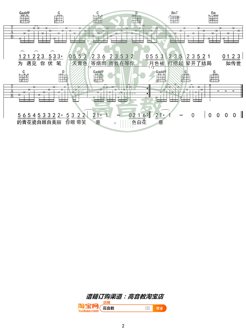 - 青花瓷吉他谱_G调入门版_周杰伦_弹唱教学视频