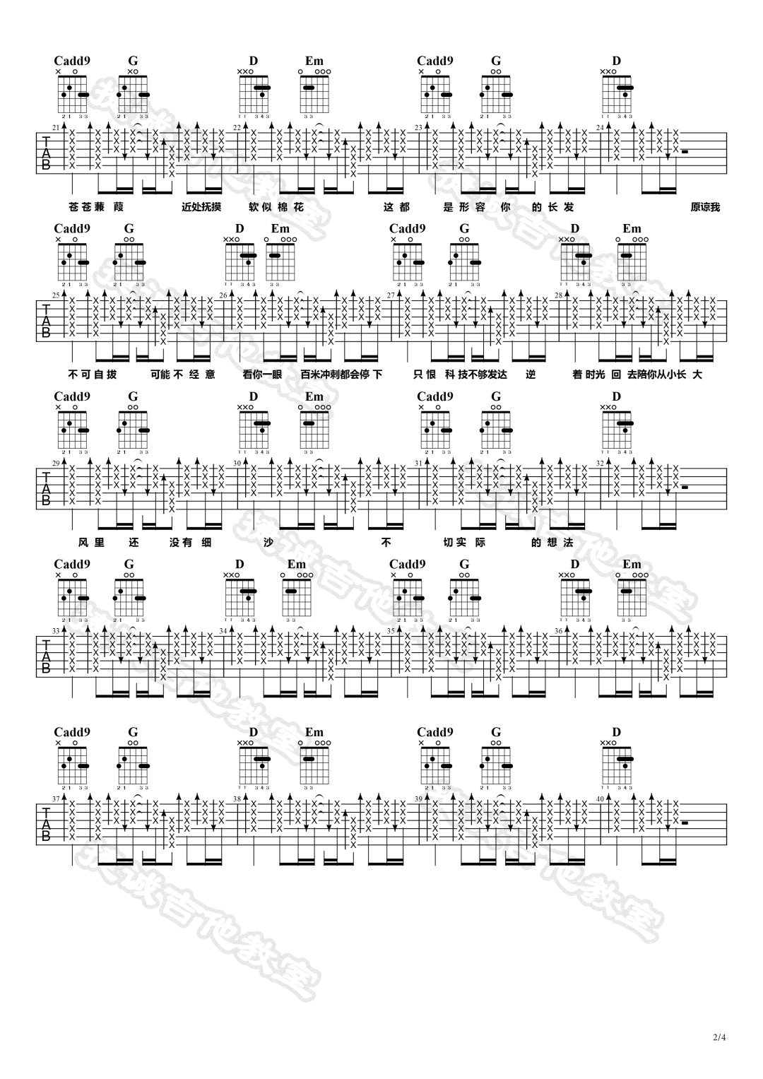- 云淡风轻吉他谱_王欣宇/沈以诚_弹唱六线谱