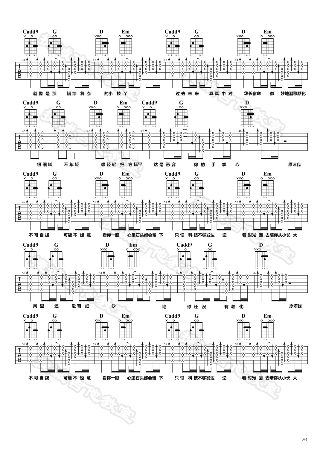- 木偶人吉他谱_薛之谦_C调和弦编配_图片谱