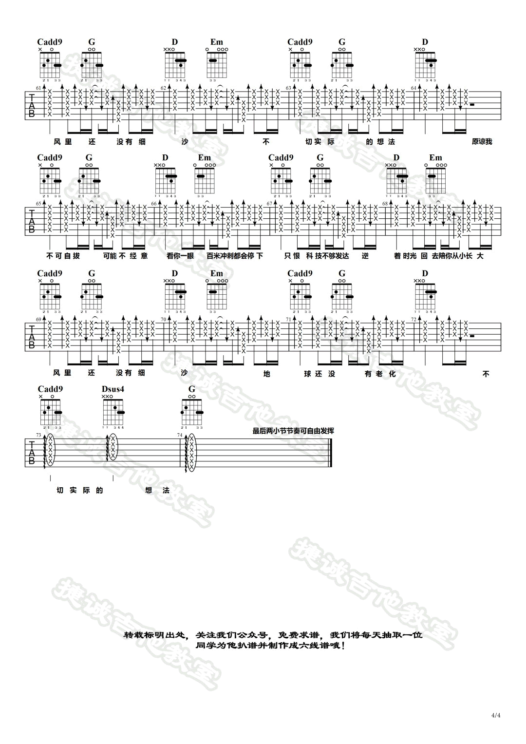 - 四块五吉他谱_隔壁老樊_C调原版_弹唱演示视频