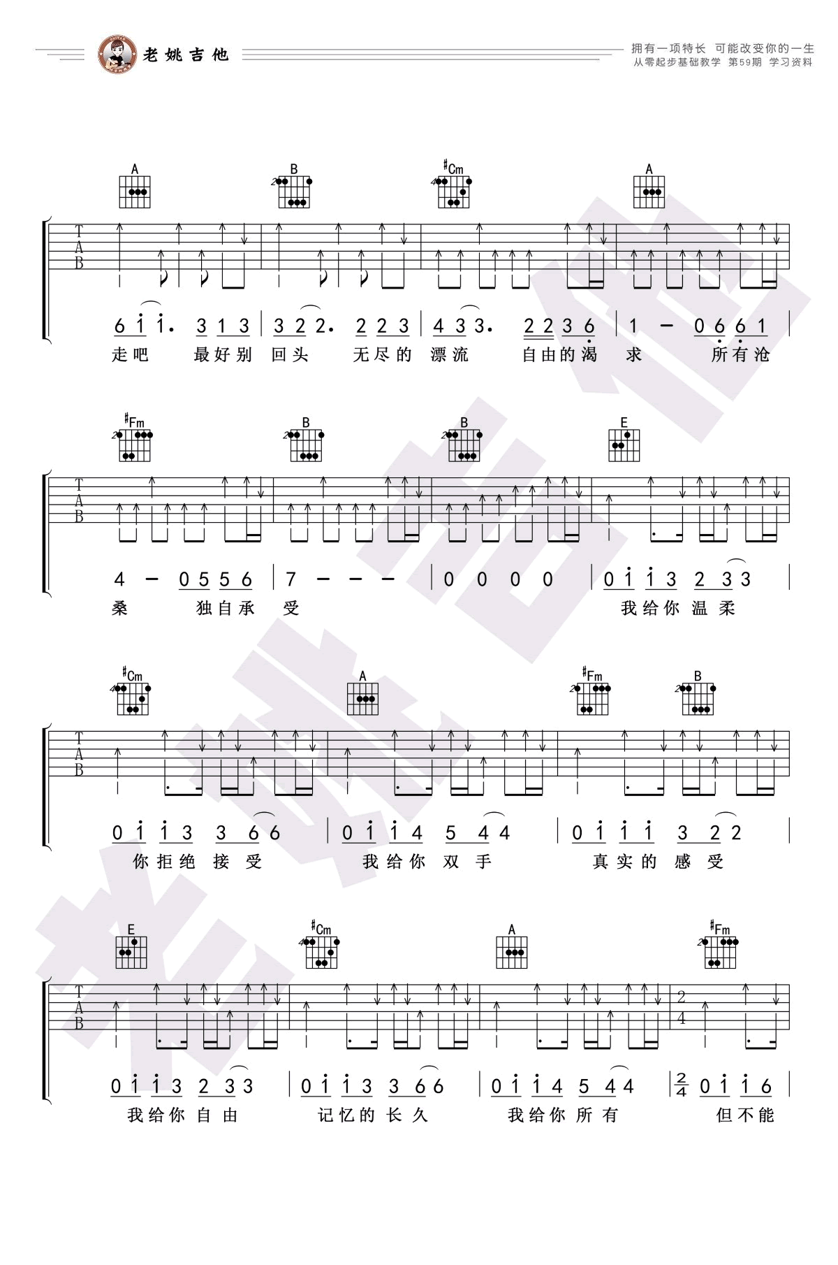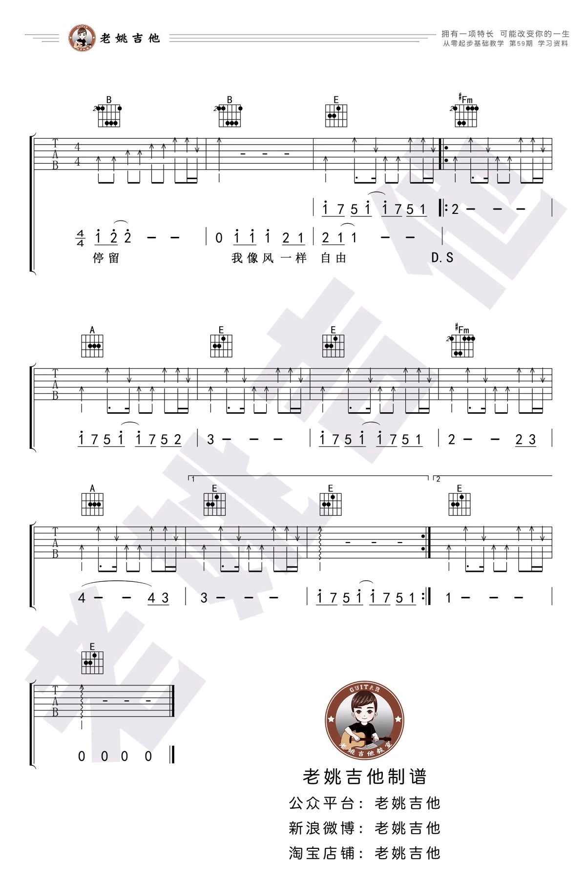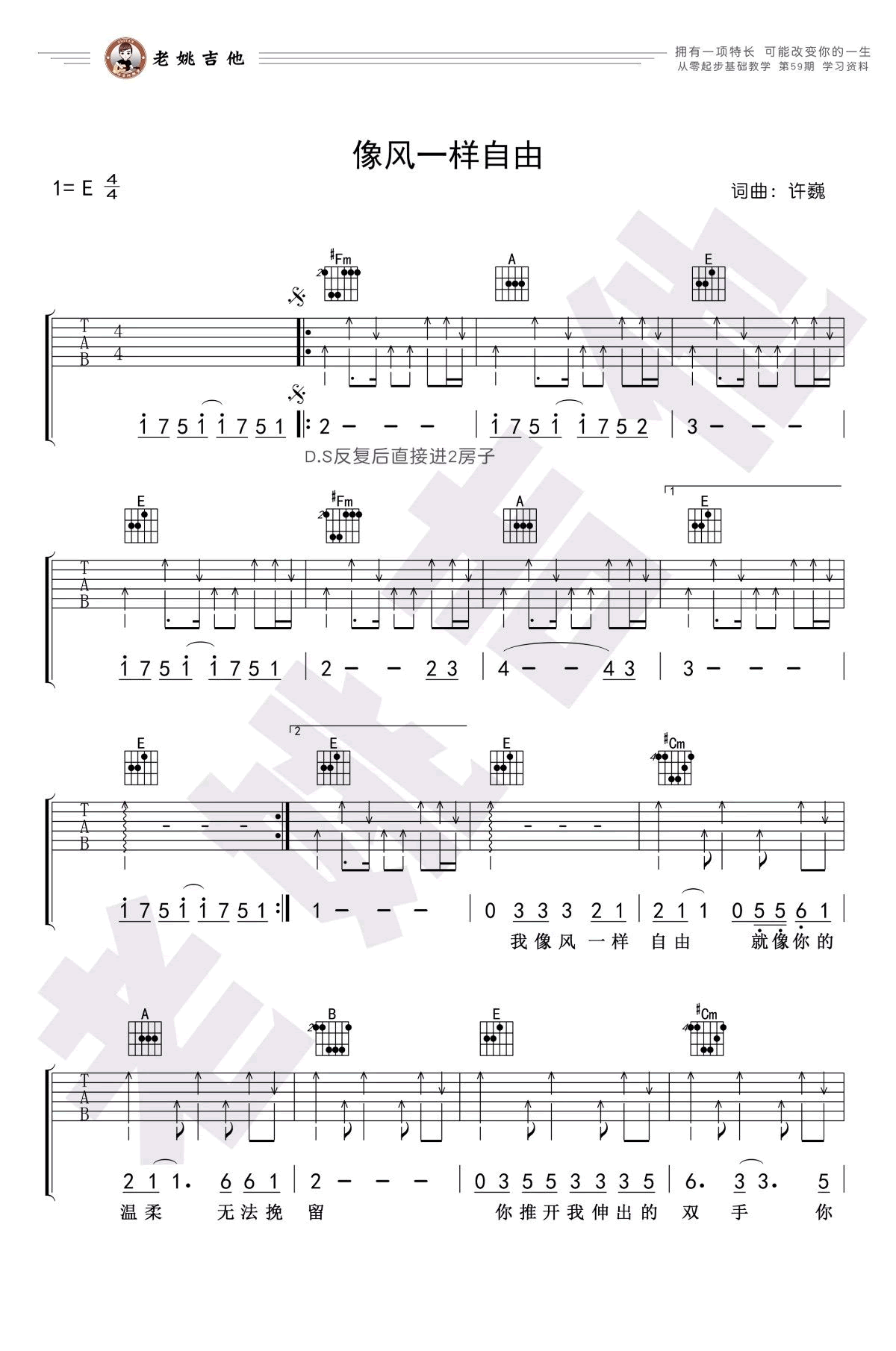 - 像风一样自由吉他谱_许巍_E调弹唱练习_吉他教学视频