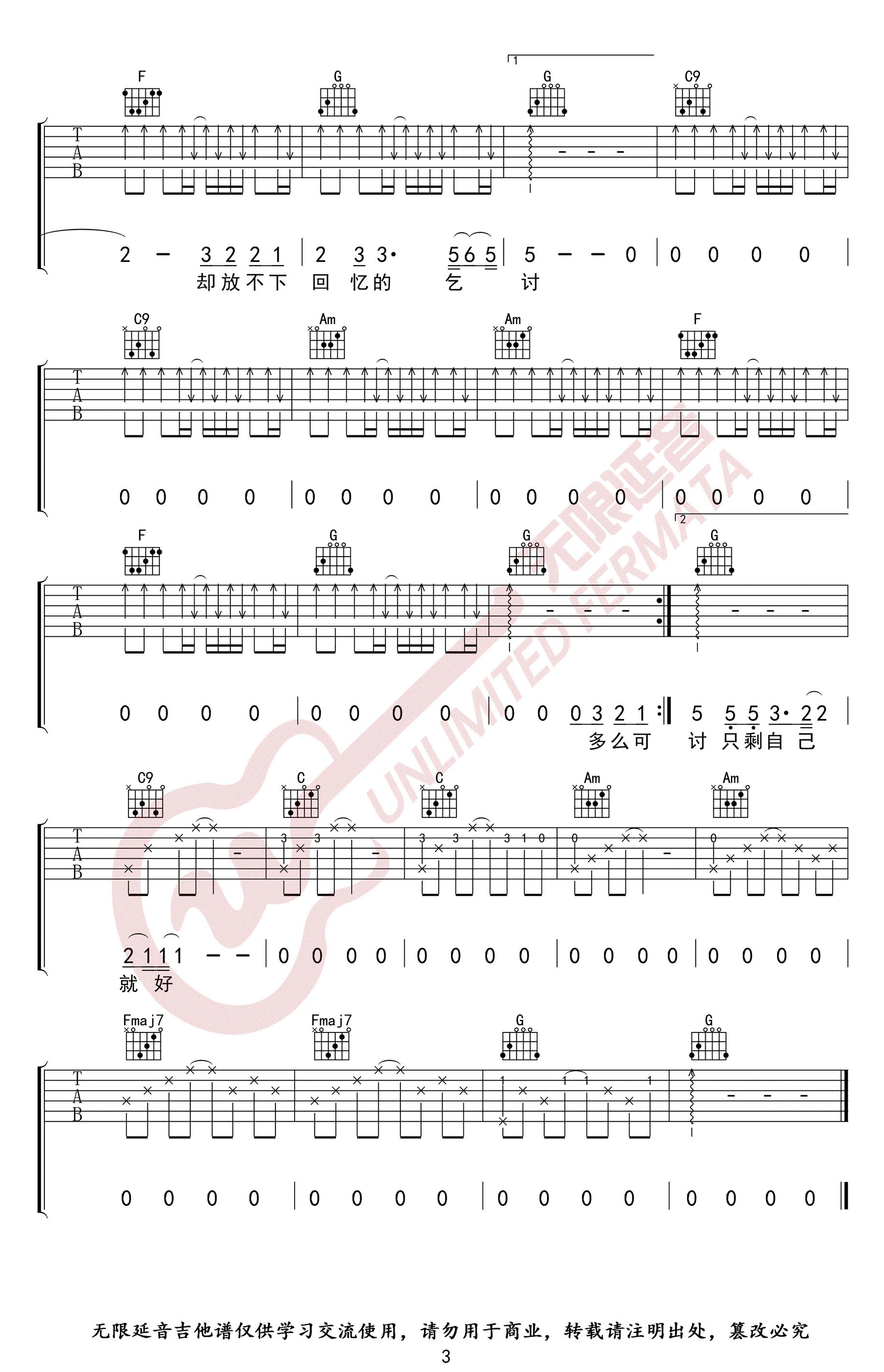 - 不负于你吉他谱_林家源_C调入门版_弹唱六线谱
