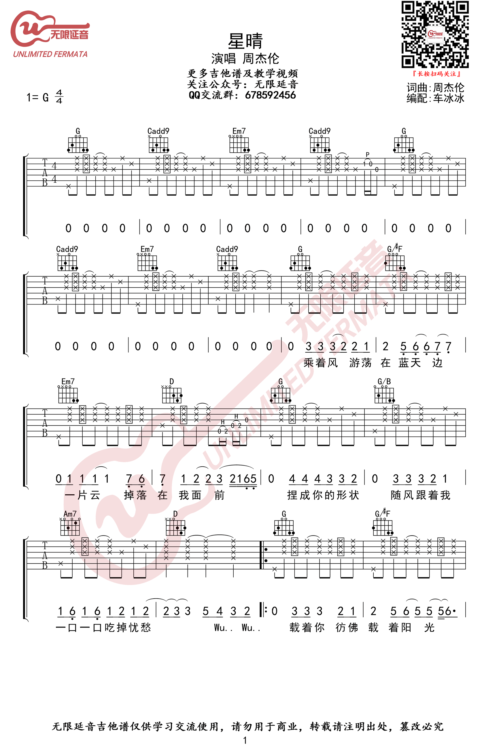 - 周杰伦《星晴》吉他谱_G调弹唱谱_图片谱