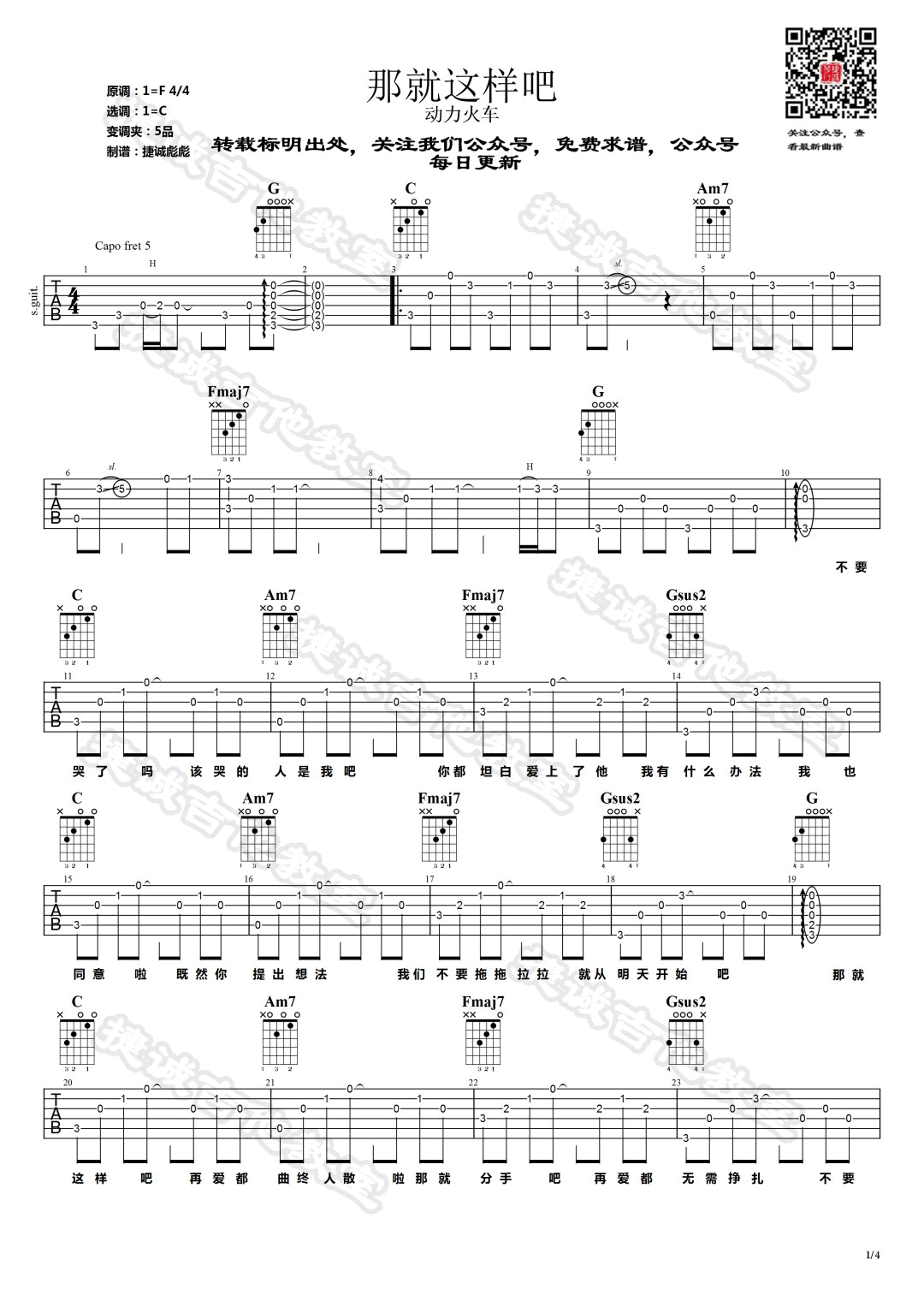 - 那就这样吧吉他谱_动力火车_C调弹唱谱_完整版