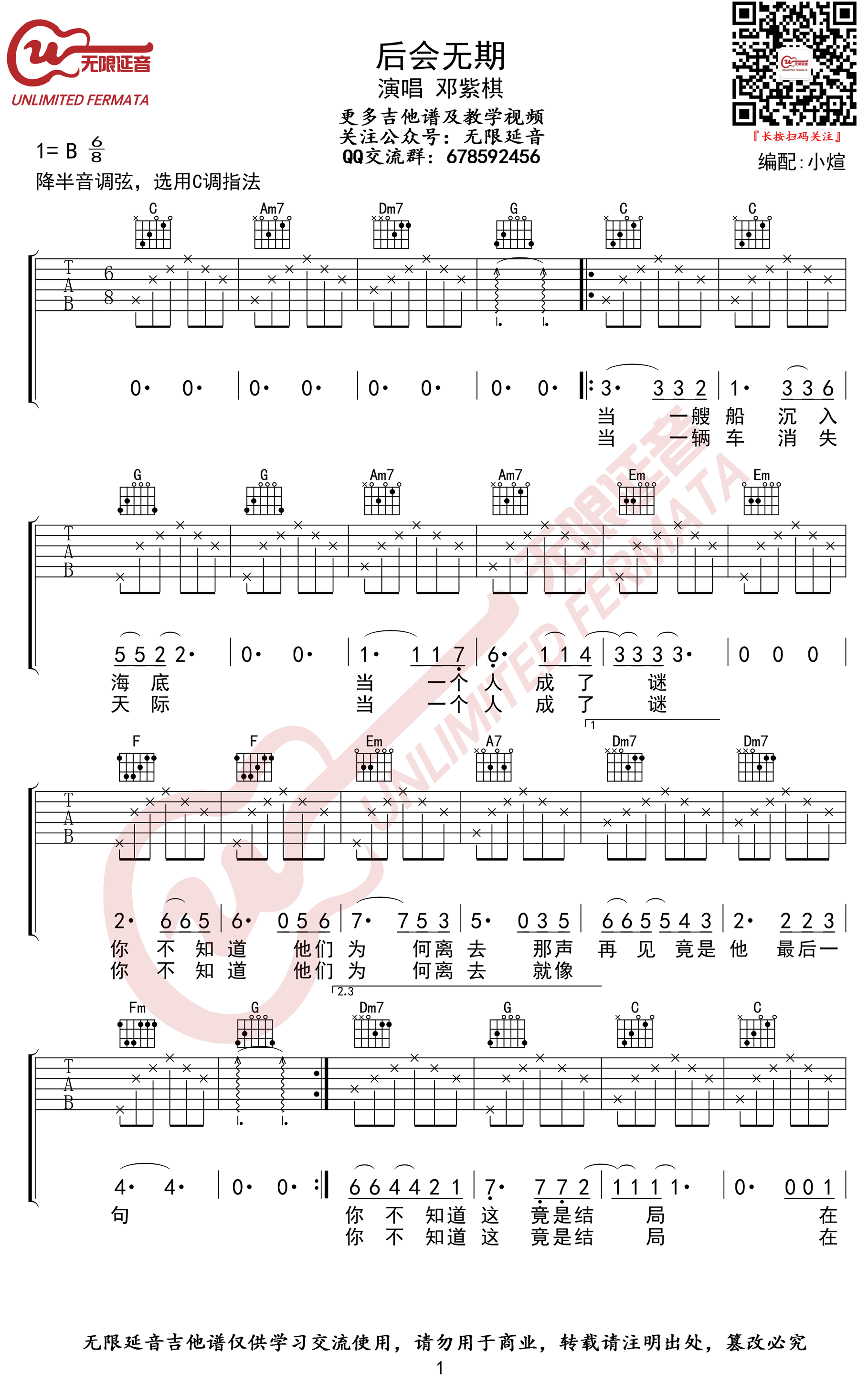 - 邓紫棋《后会无期》吉他谱_C调弹唱谱_高清版