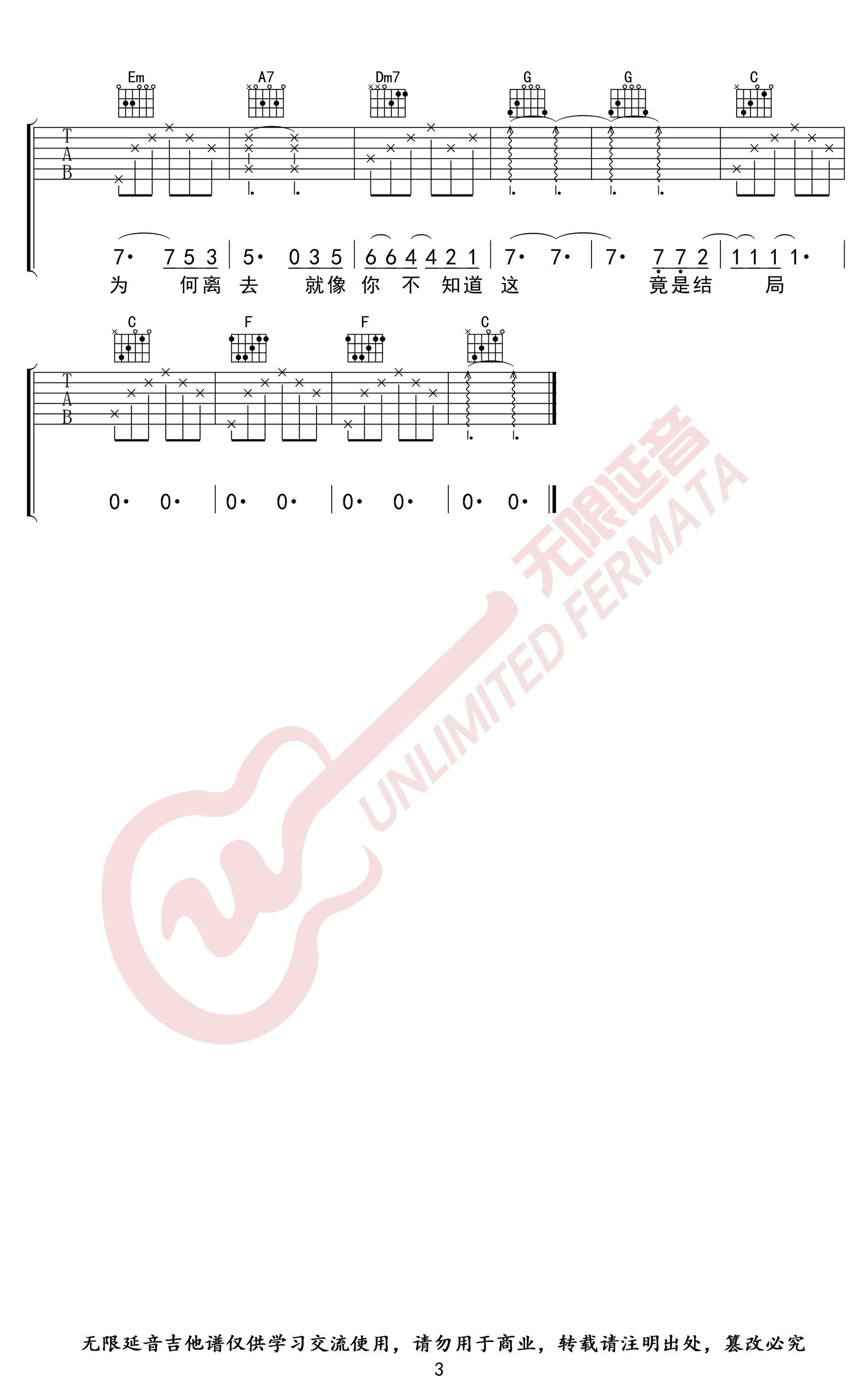 - 《耿》吉他谱_汪苏泷_C调简单版_吉他教学视频
