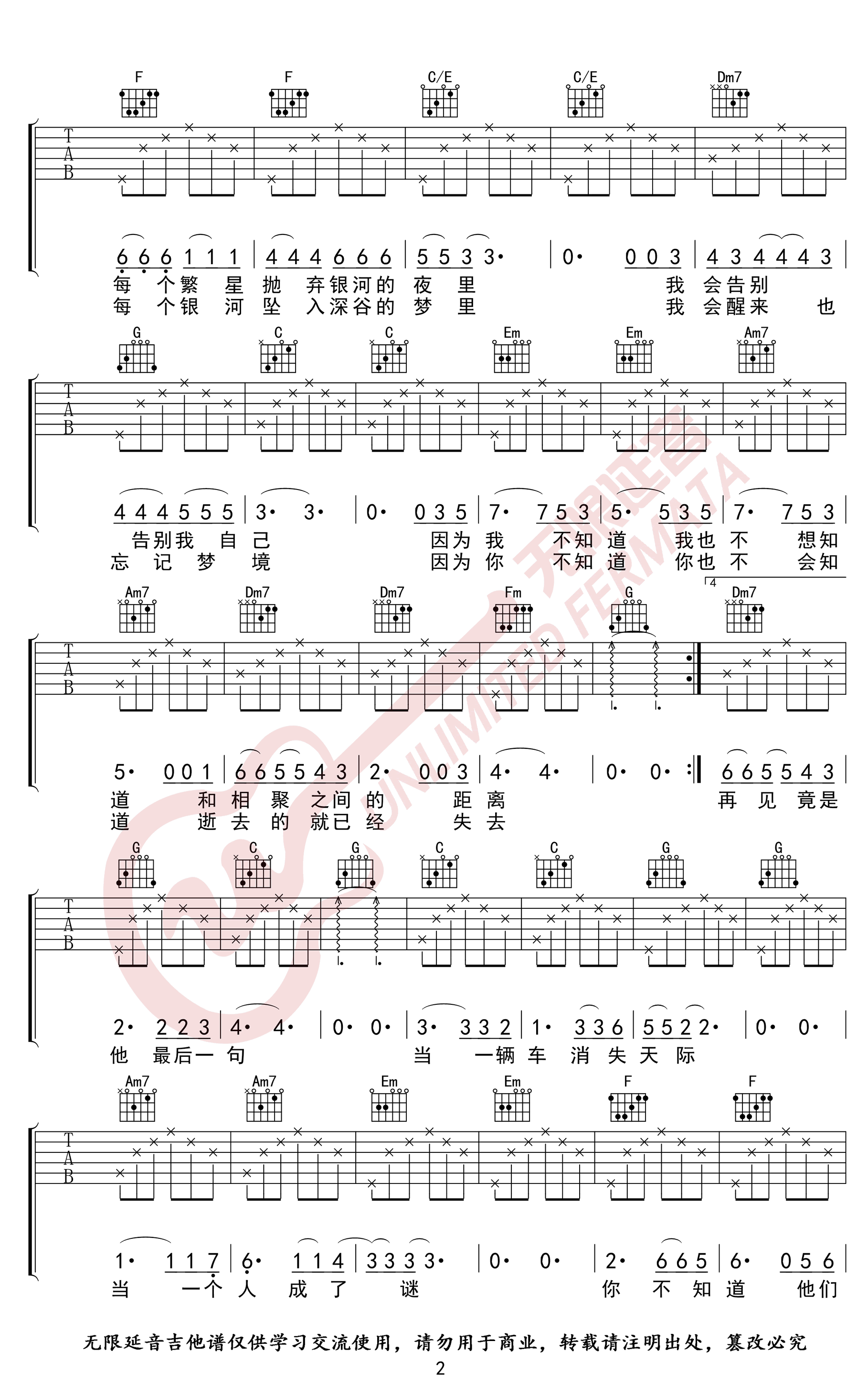 - 汪苏泷《耿》吉他谱_C调六线谱_《最好的我们》主题曲