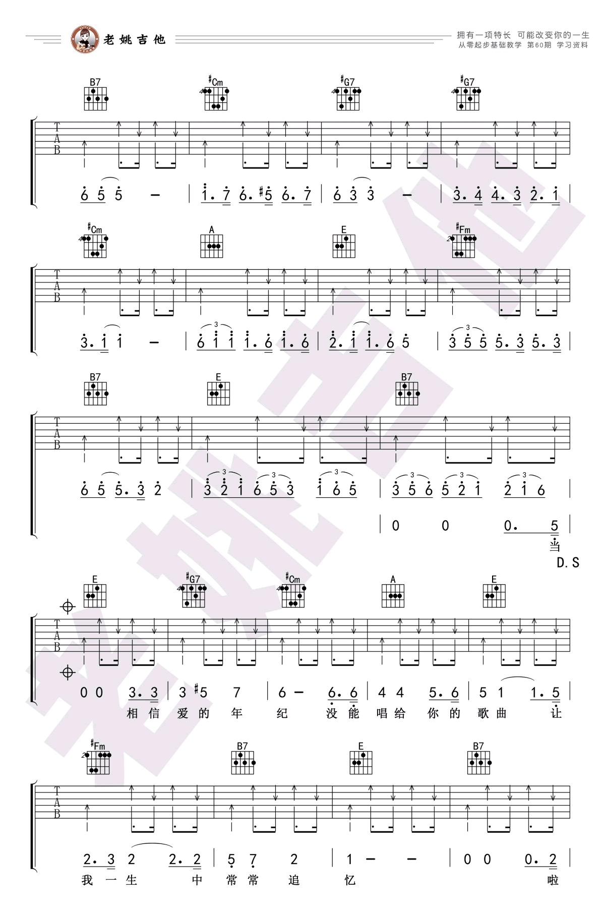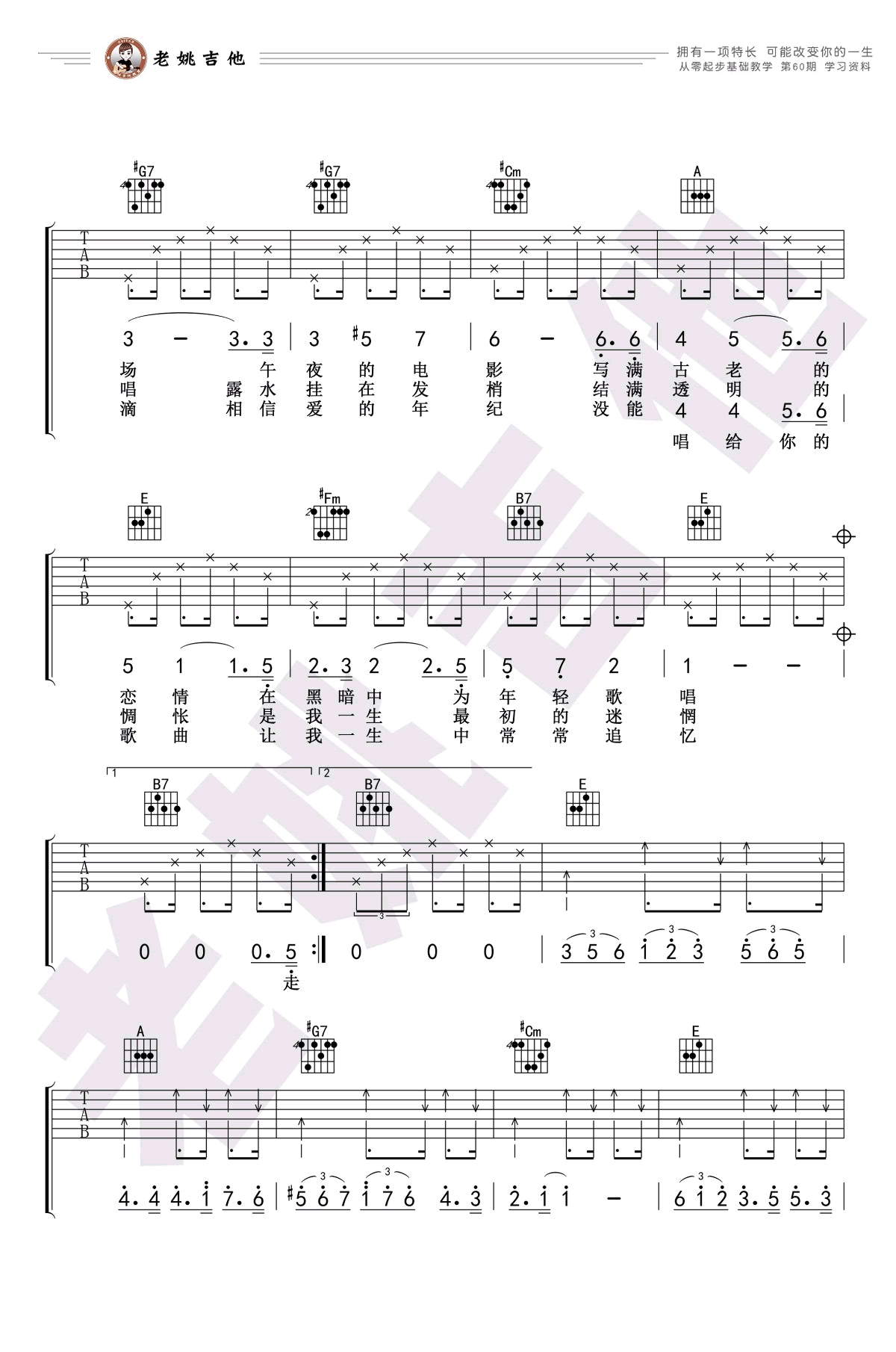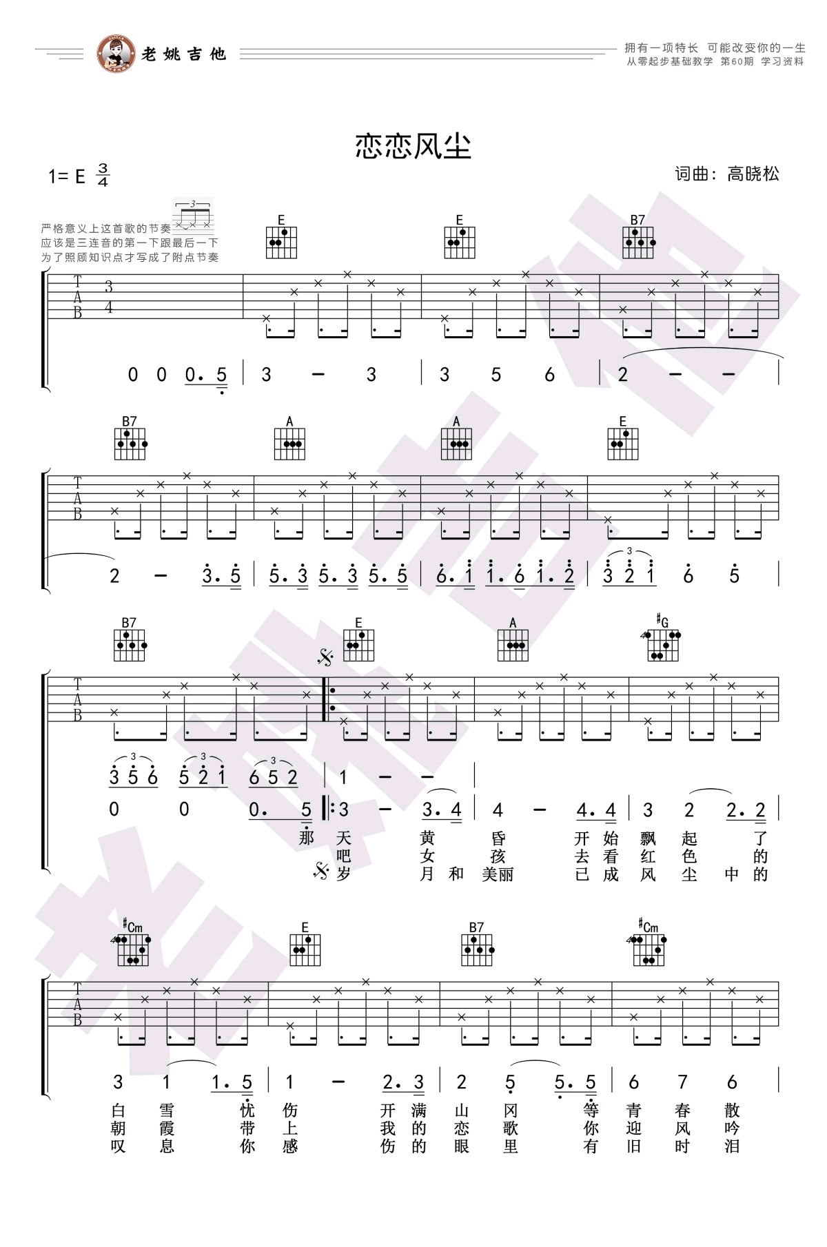 - 老狼《恋恋风尘》吉他谱_E调弹唱谱_吉他教学视频
