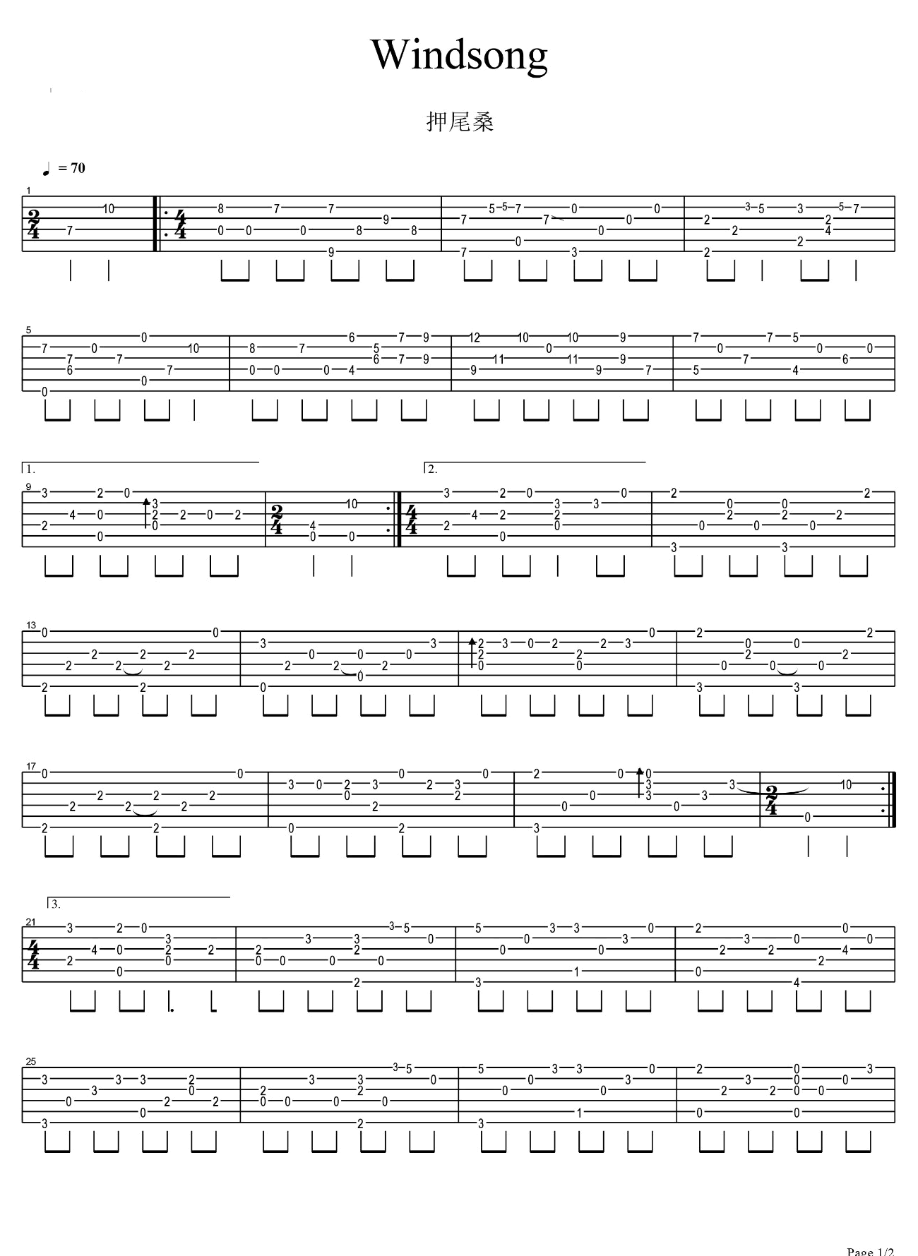- Wind Song指弹谱_押尾桑_风之诗吉他独奏谱