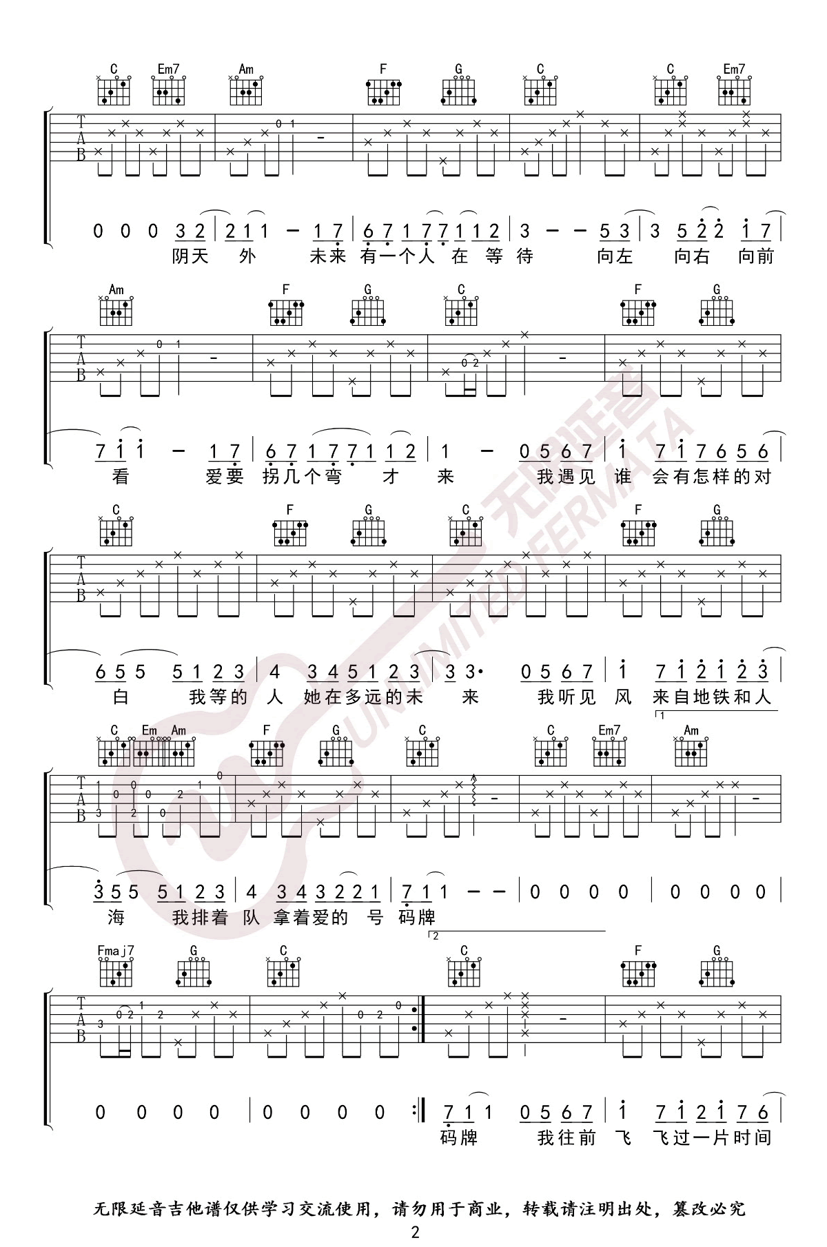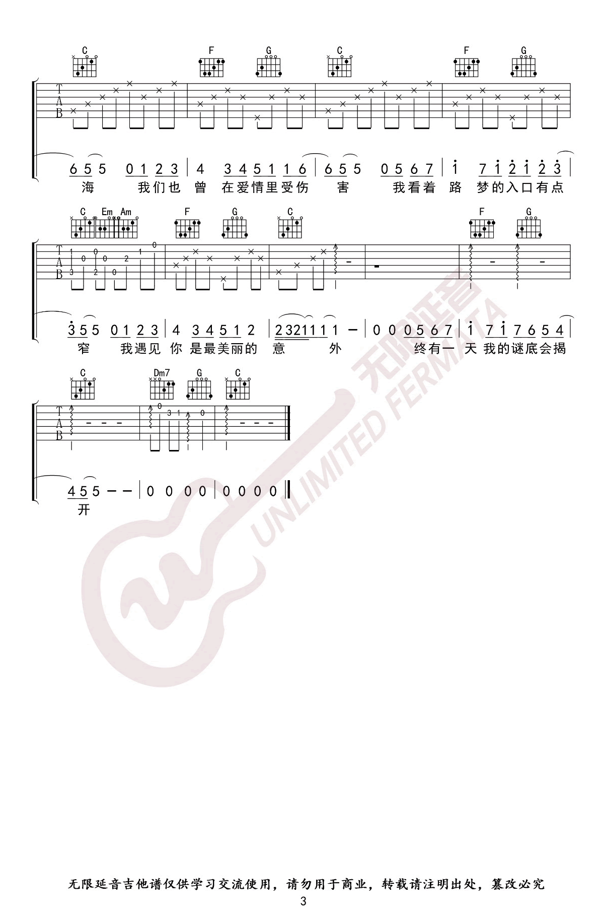- 遇见吉他谱 孙燕姿 C调男生版 高清弹唱图片谱