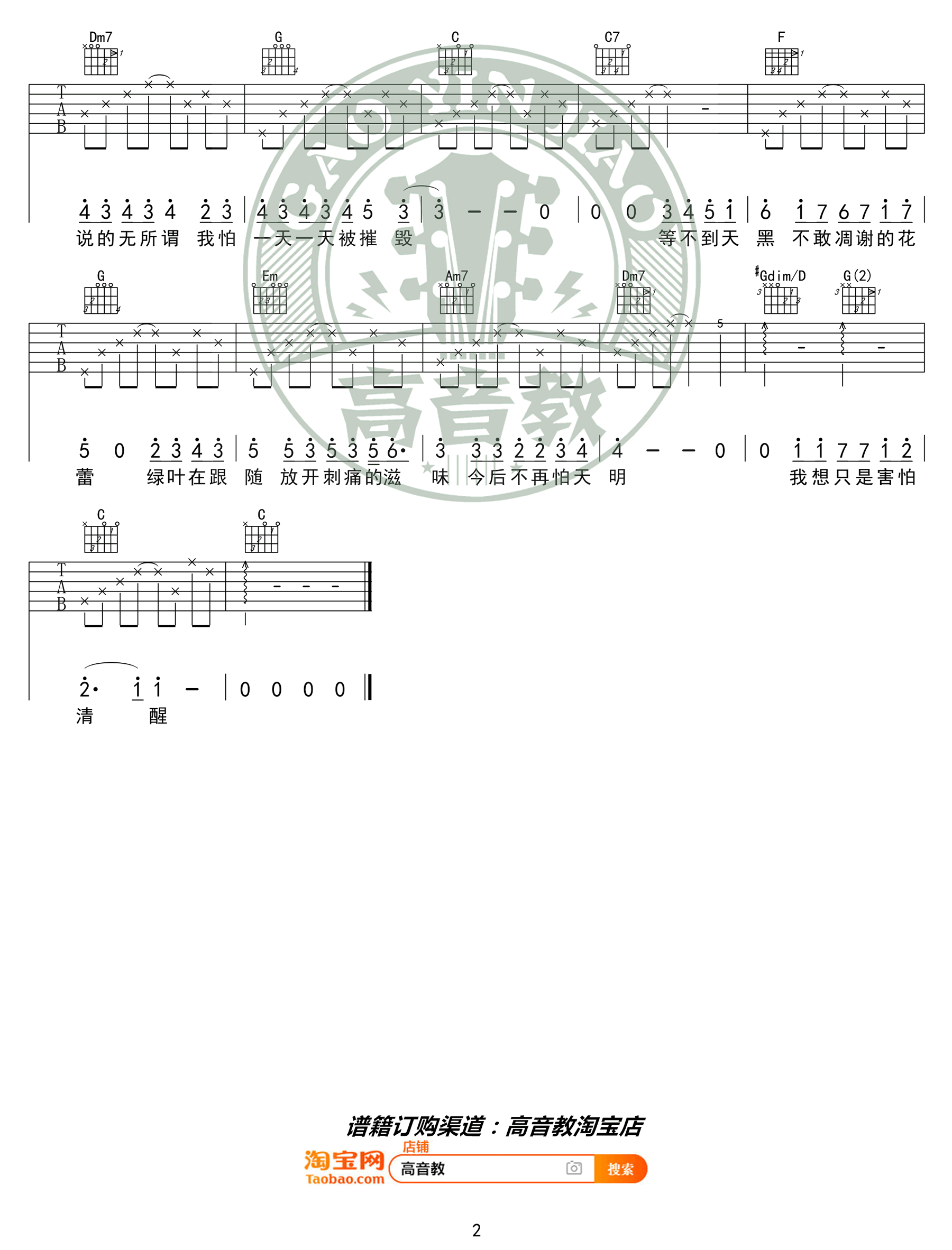 - 汪苏泷《耿》吉他谱_C调六线谱_《最好的我们》主题曲