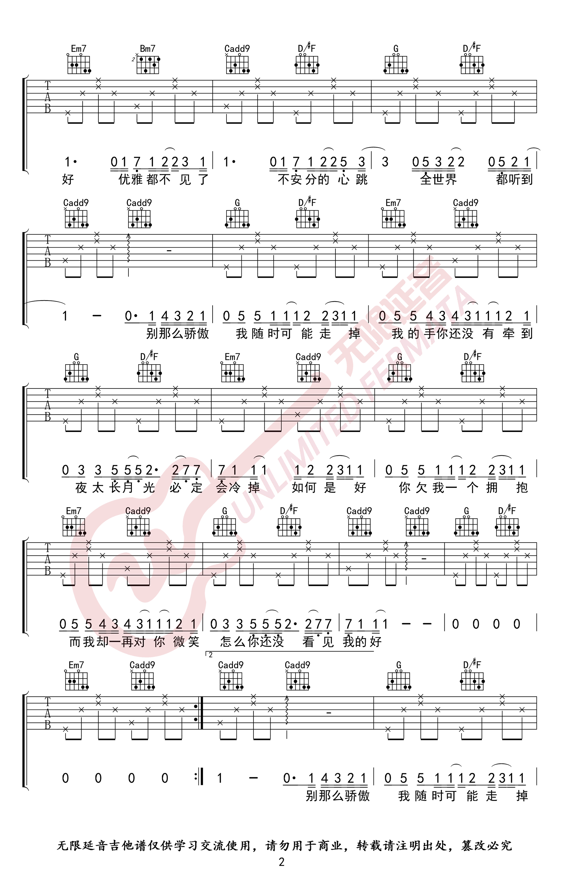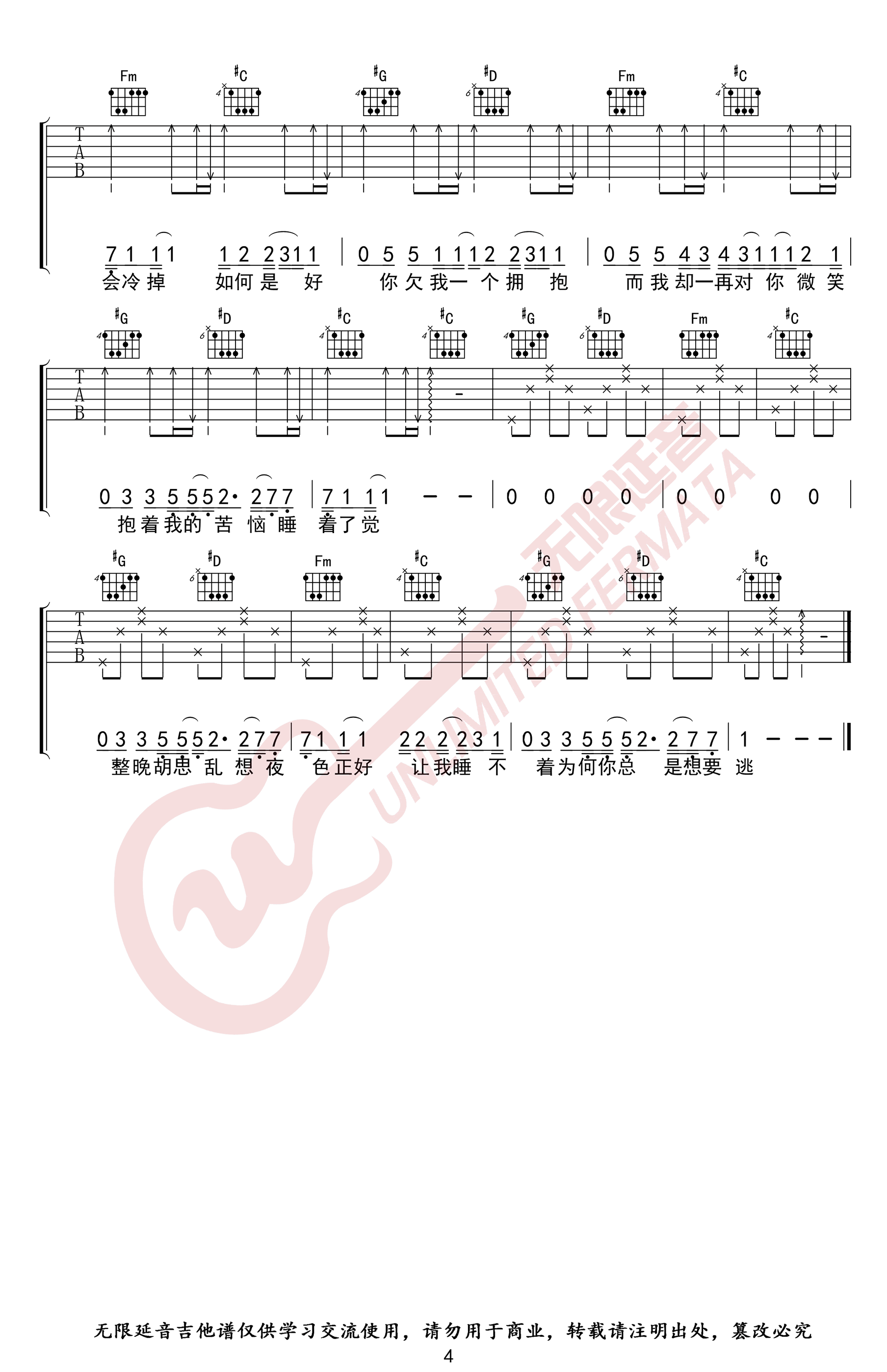 - 于文文《体面》吉他谱_G调六线谱_高清版