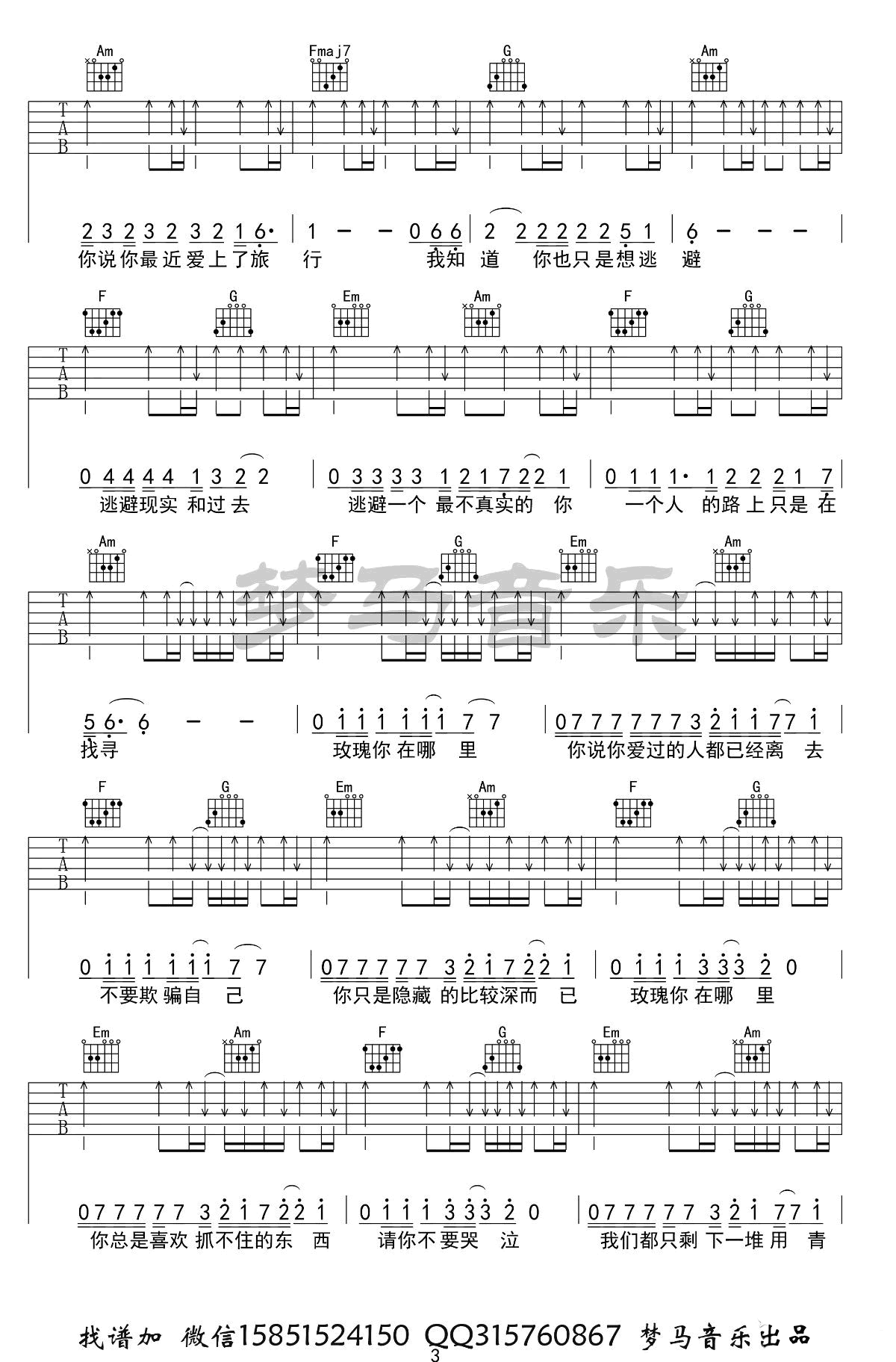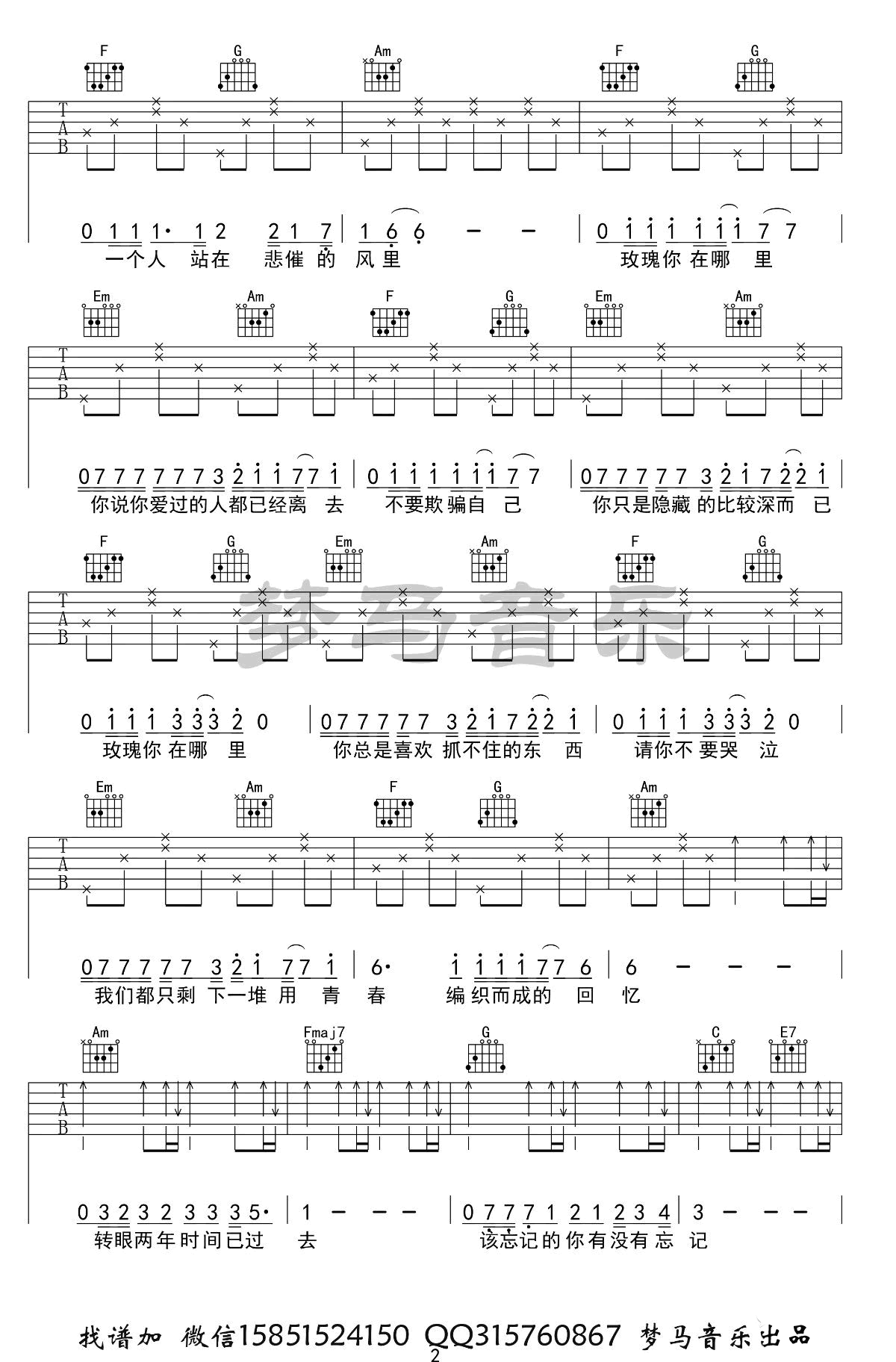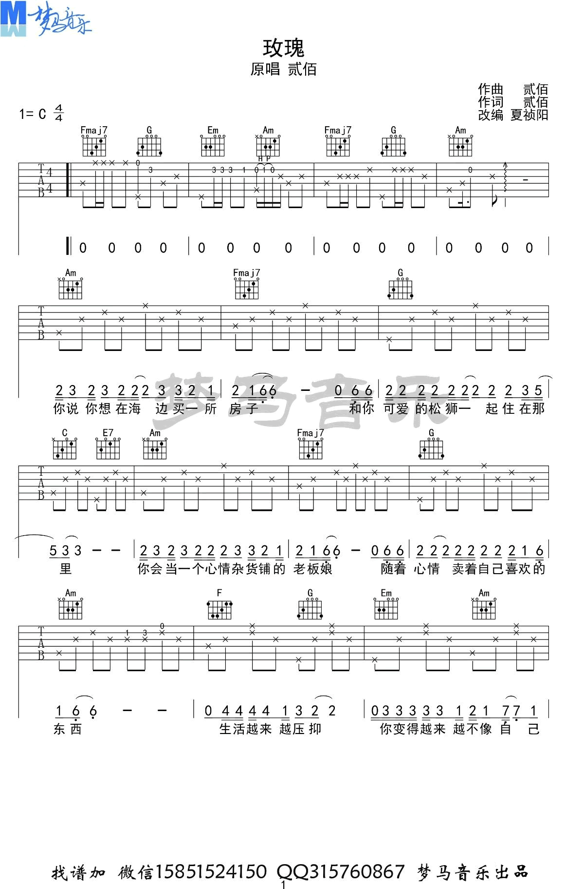 - 贰佰玫瑰吉他谱_C调原版_弹唱六线谱