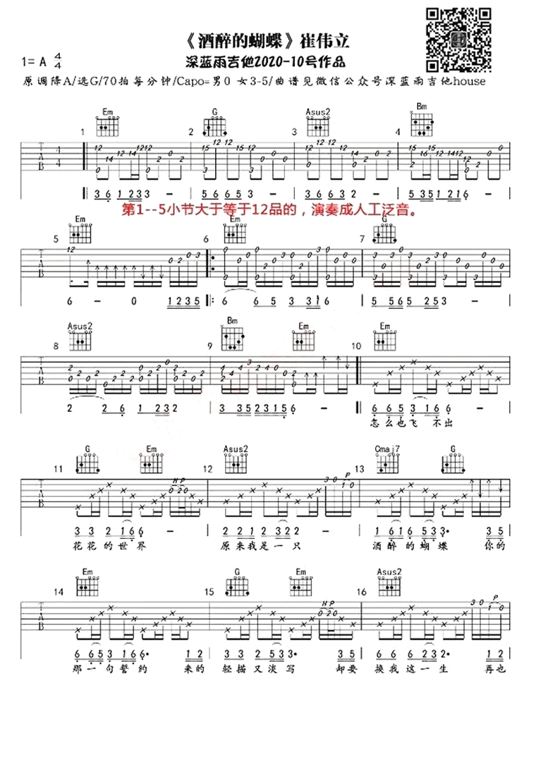 - 酒醉的蝴蝶吉他谱_崔伟立_G调_弹唱演示视频
