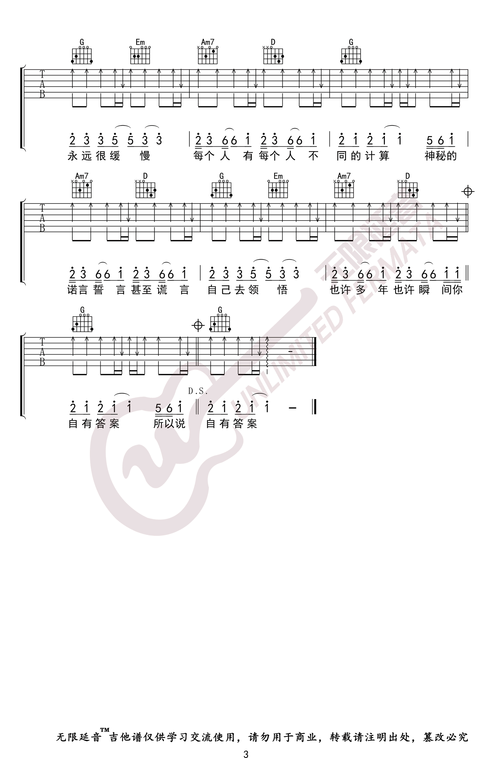 - 无人之岛吉他谱_任然_C调_高清图片谱