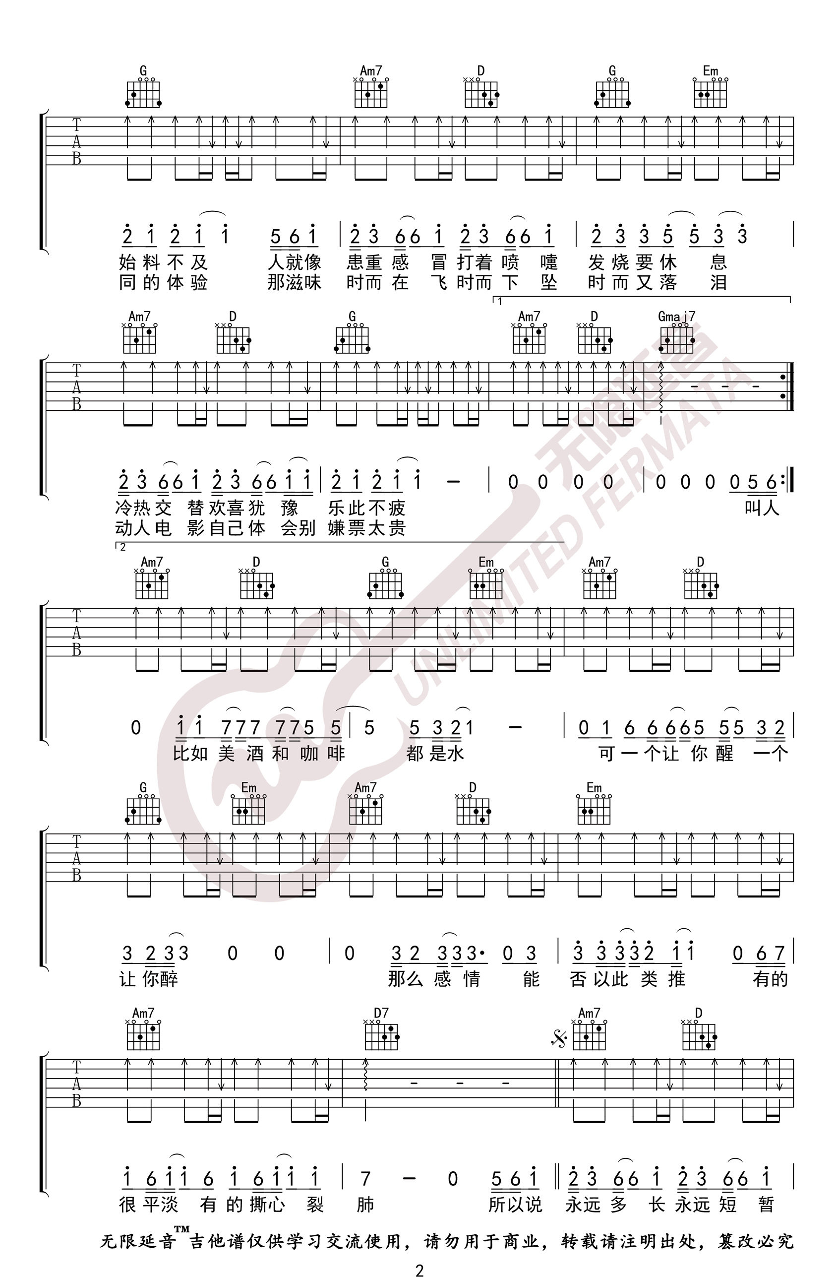 - 万有引力吉他谱_汪苏泷_C调弹唱谱_吉他演示视频