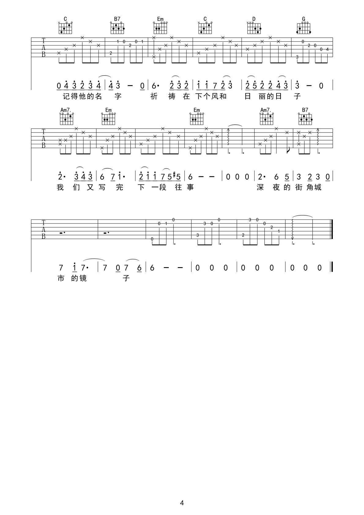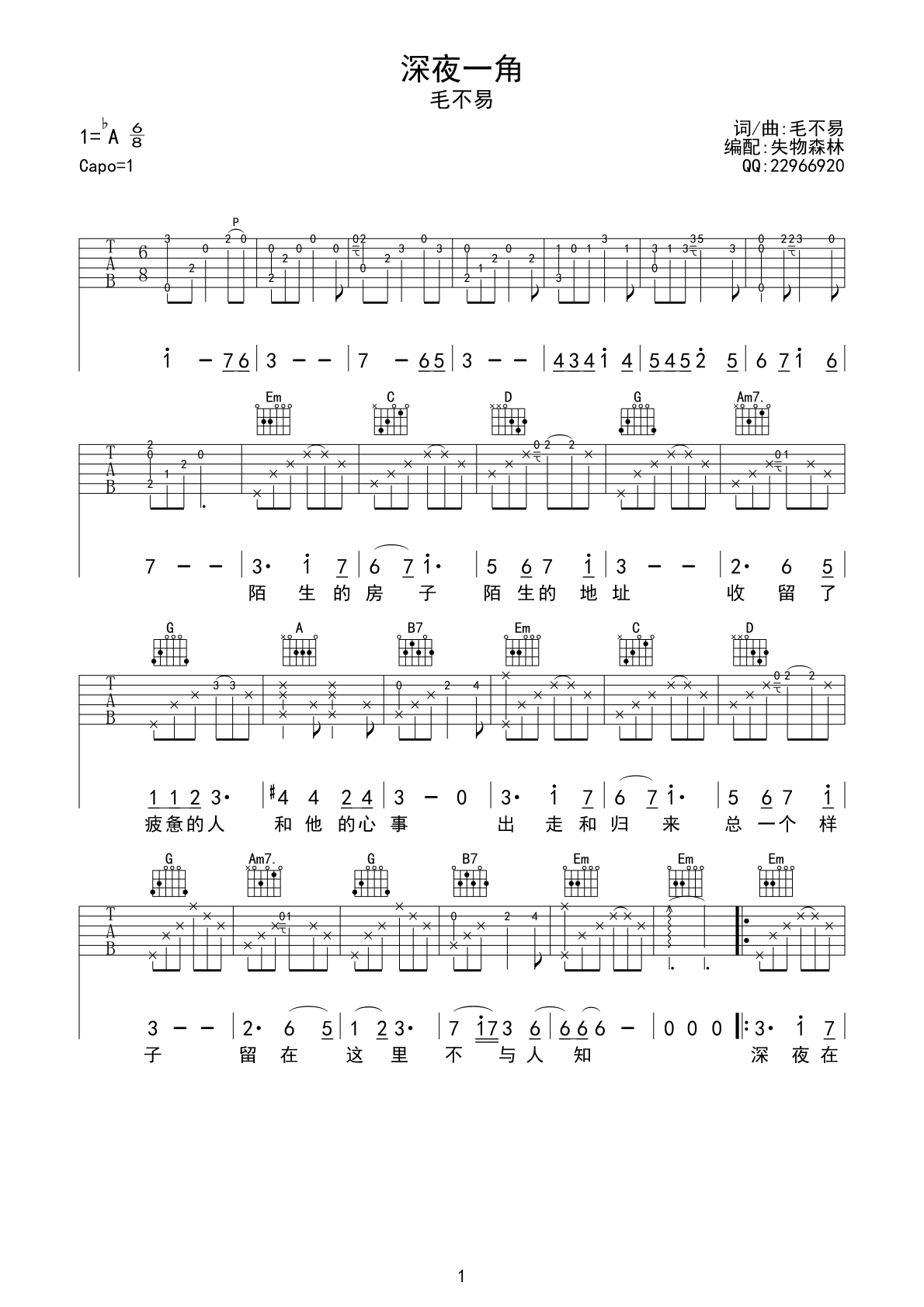 - 毛不易《深夜一角》吉他谱_G调指法_弹唱六线谱