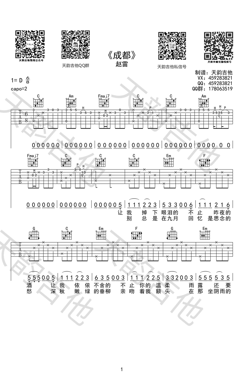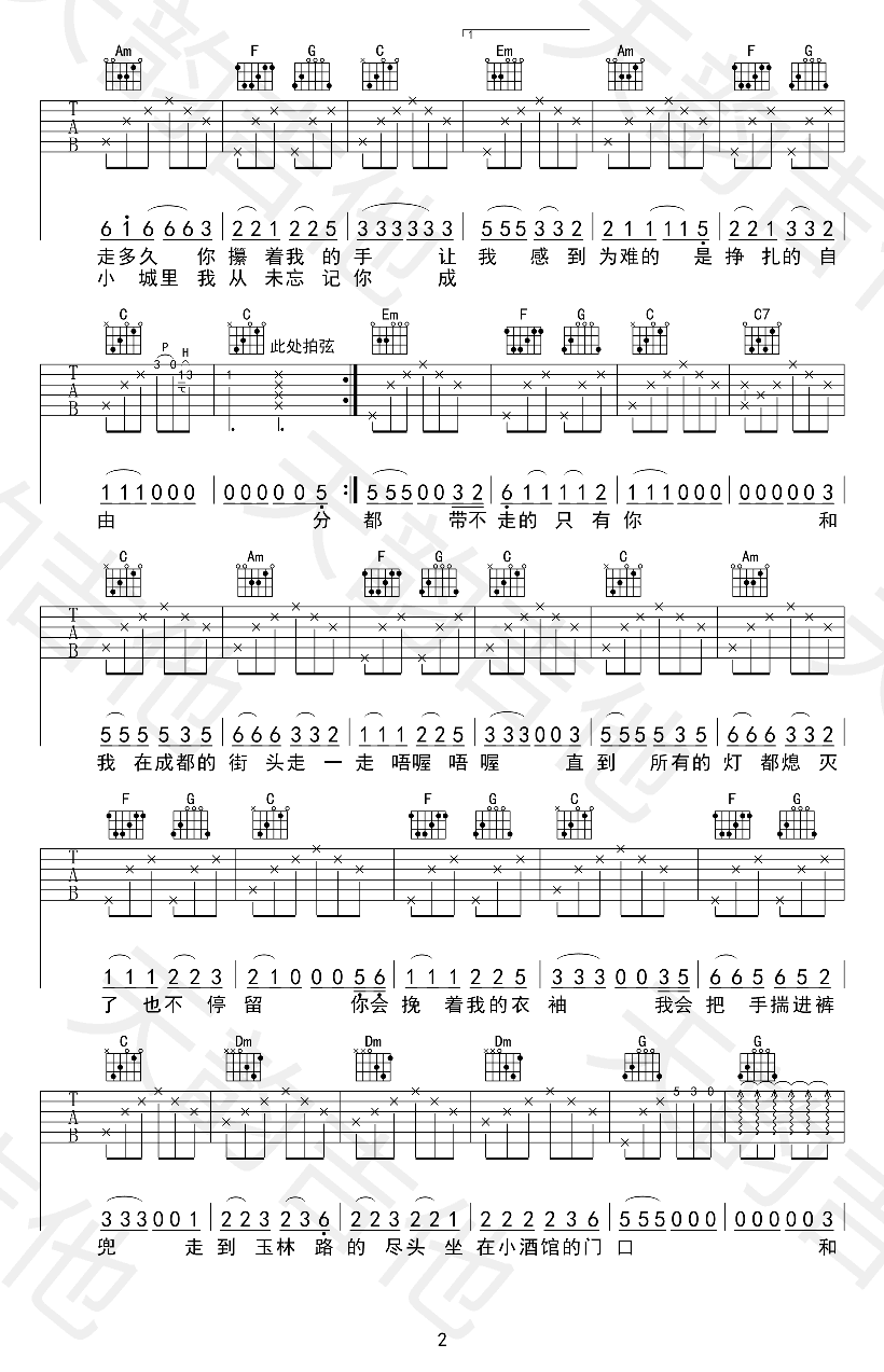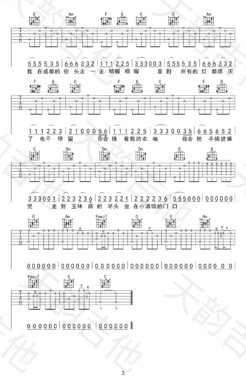 - 成都吉他谱_C调完美版_赵雷_弹唱六线谱