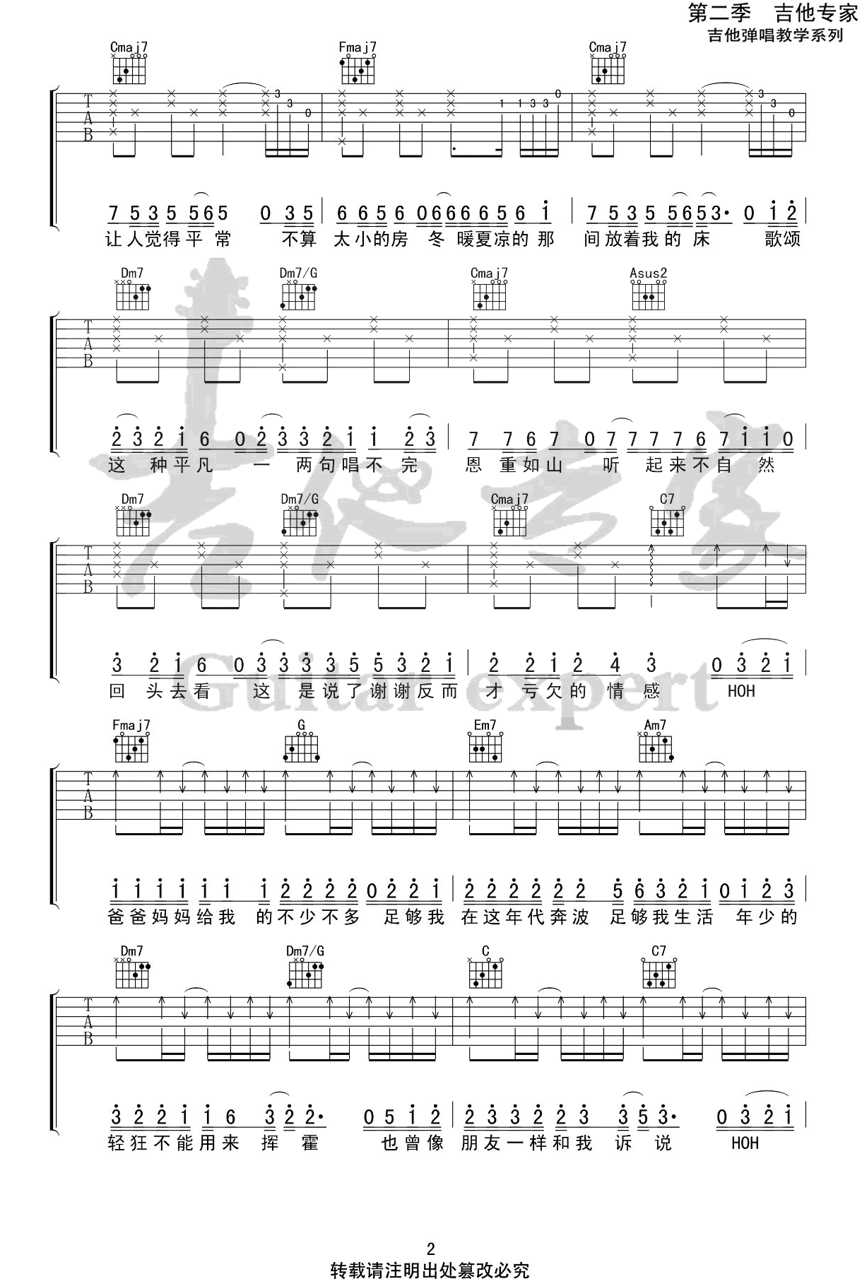 - 李荣浩《爸爸妈妈》吉他谱_C调指法_弹唱谱