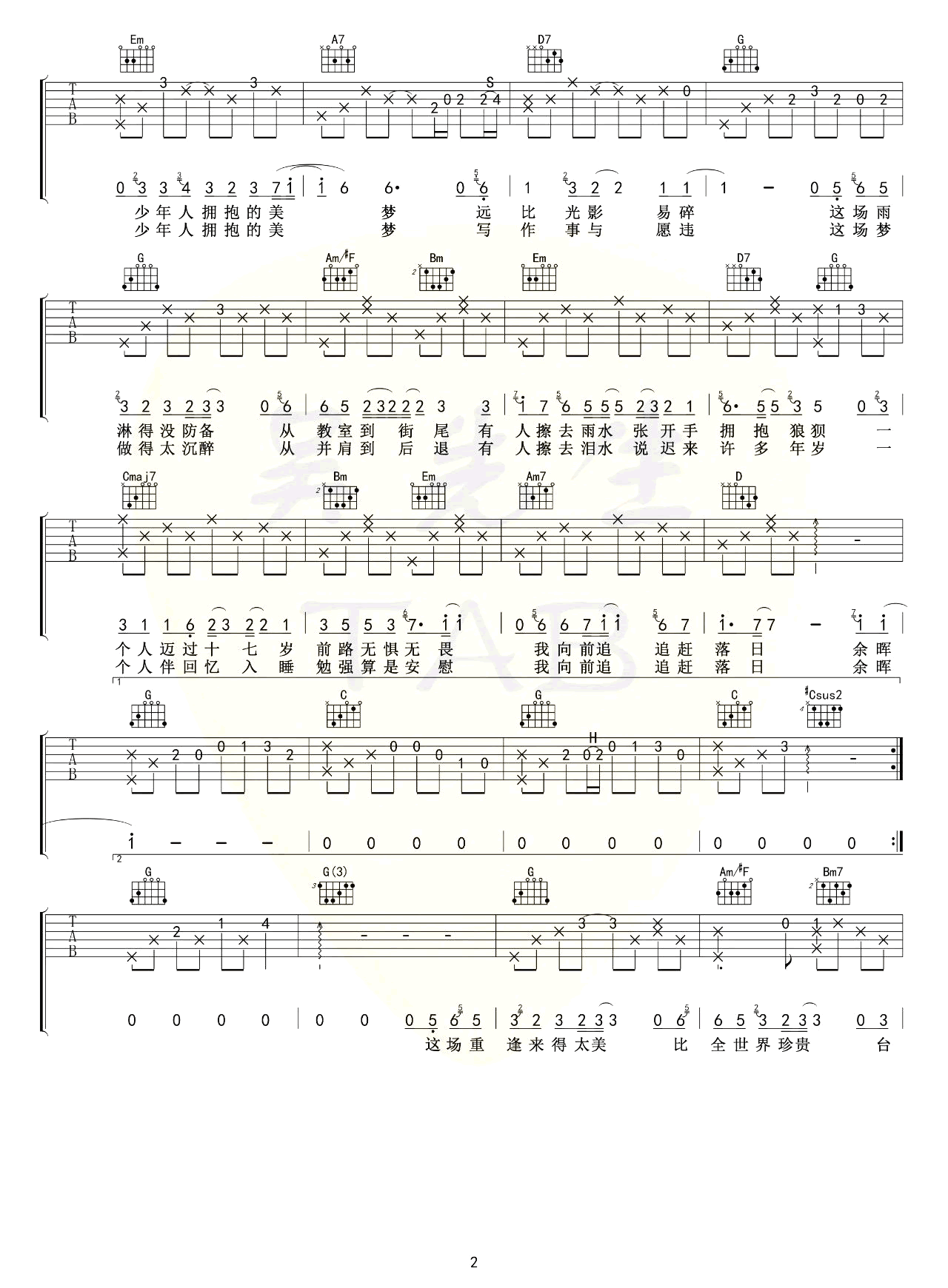 - 虎二《窗》吉他谱_G调弹唱谱_高清原版六线谱