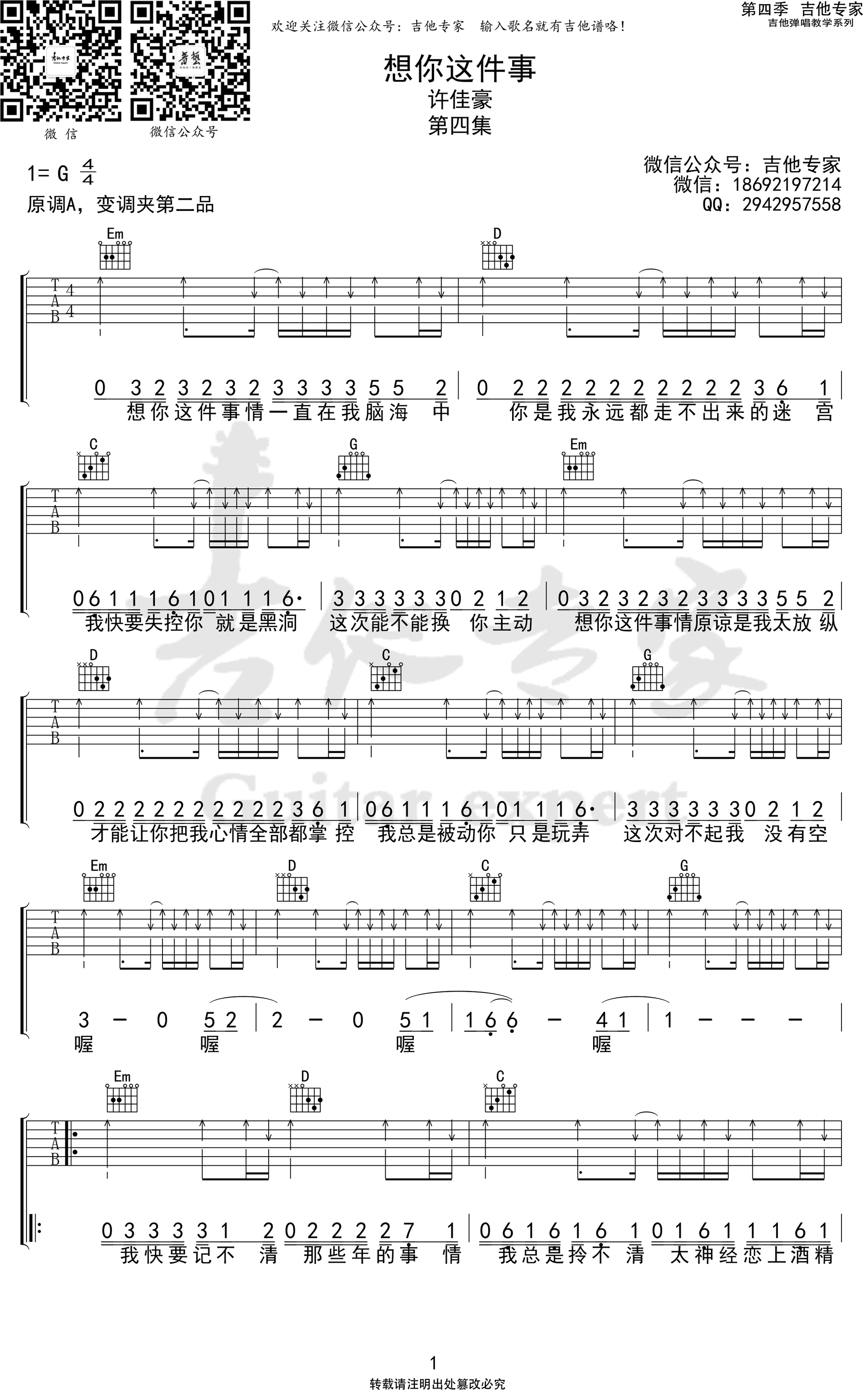 - 想你这件事吉他谱_烟(许佳豪)_G调_高清弹唱谱