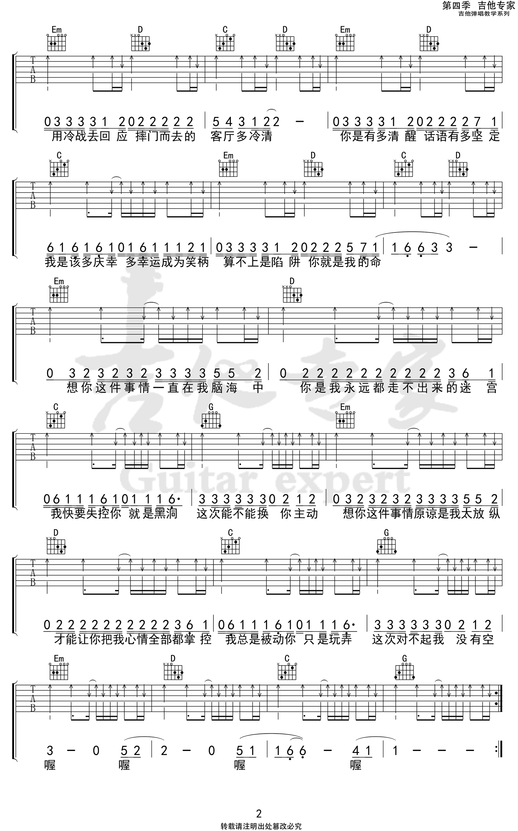 - 渐冷吉他谱_雪二《渐冷》C调弹唱_原版六线谱