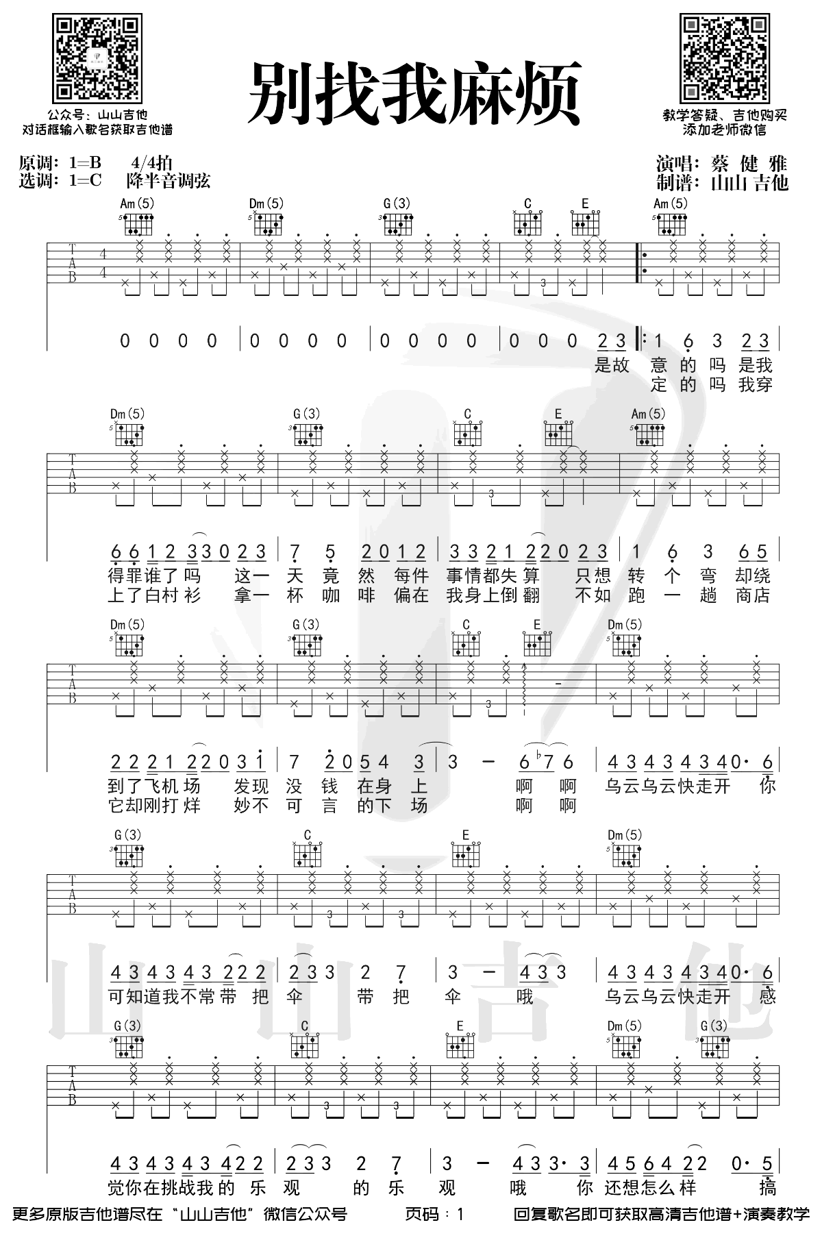 - 别找我麻烦吉他谱_蔡健雅_吉他弹唱谱_演示视频