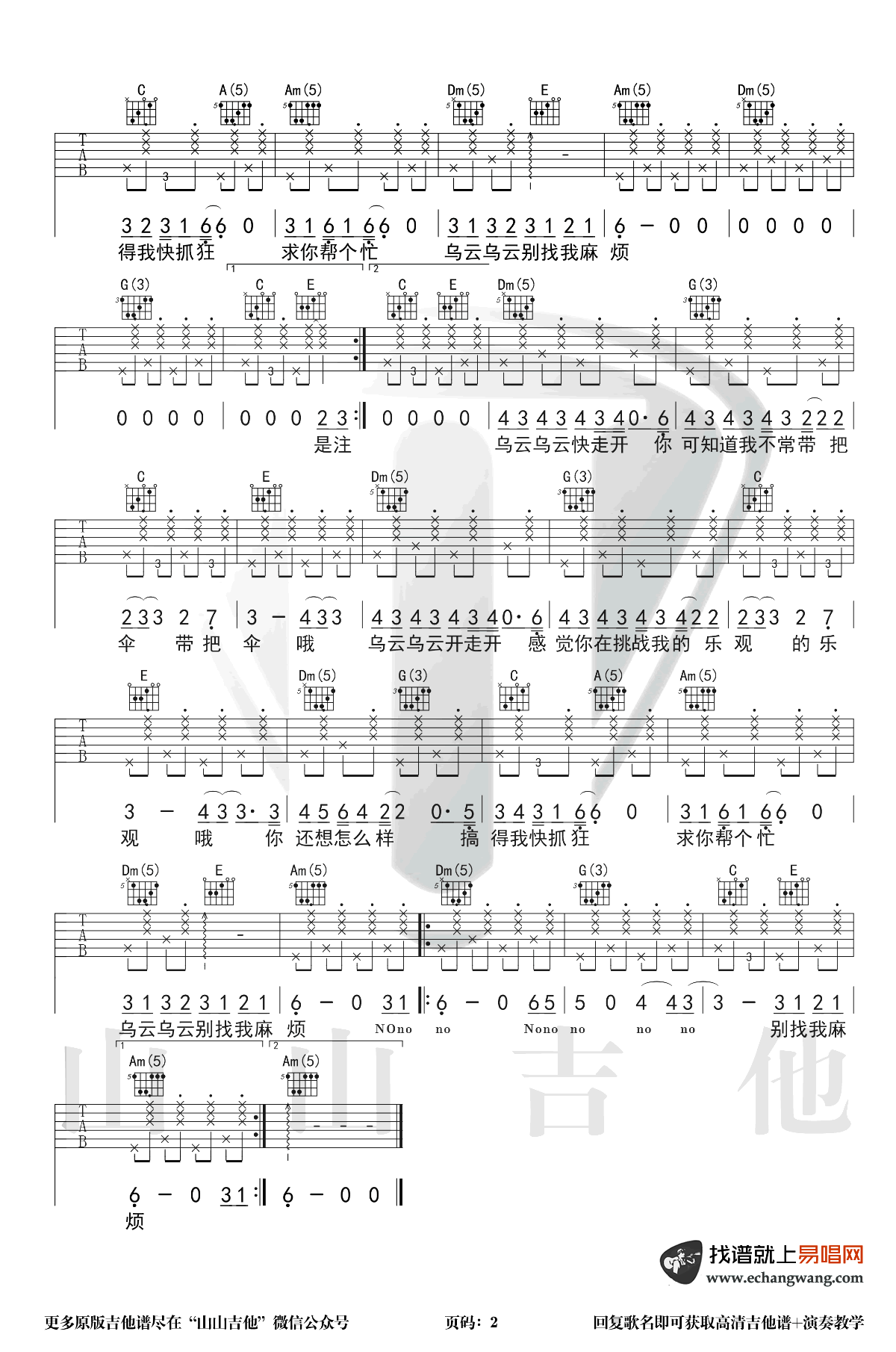 - 云与海吉他谱_阿YueYue_C调指法_原版弹唱谱