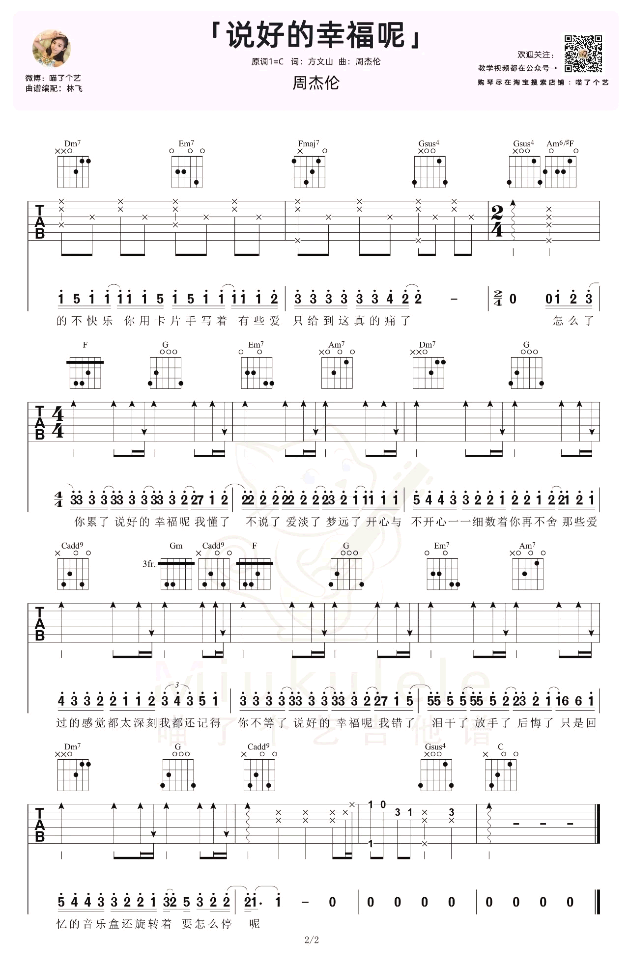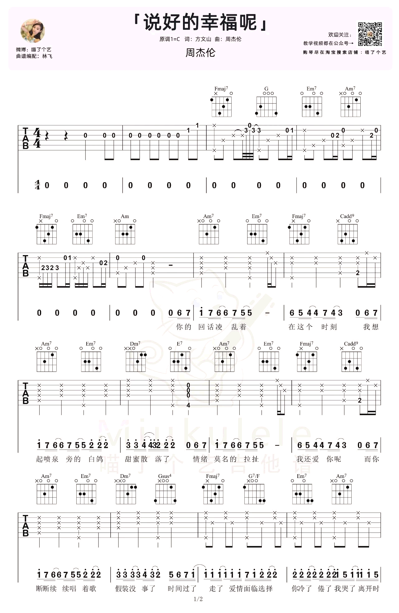 - 说好的幸福呢吉他谱_周杰伦_C调_弹唱教学视频