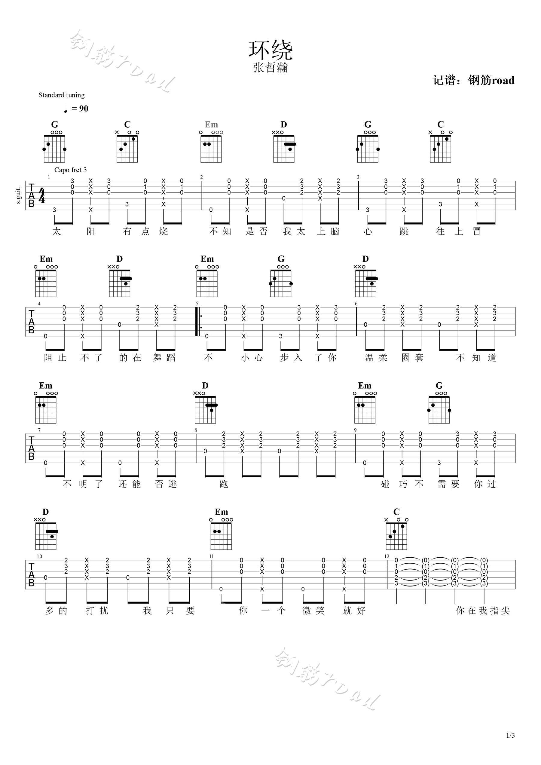 - 环绕吉他谱_张哲瀚_简单版_弹唱六线谱