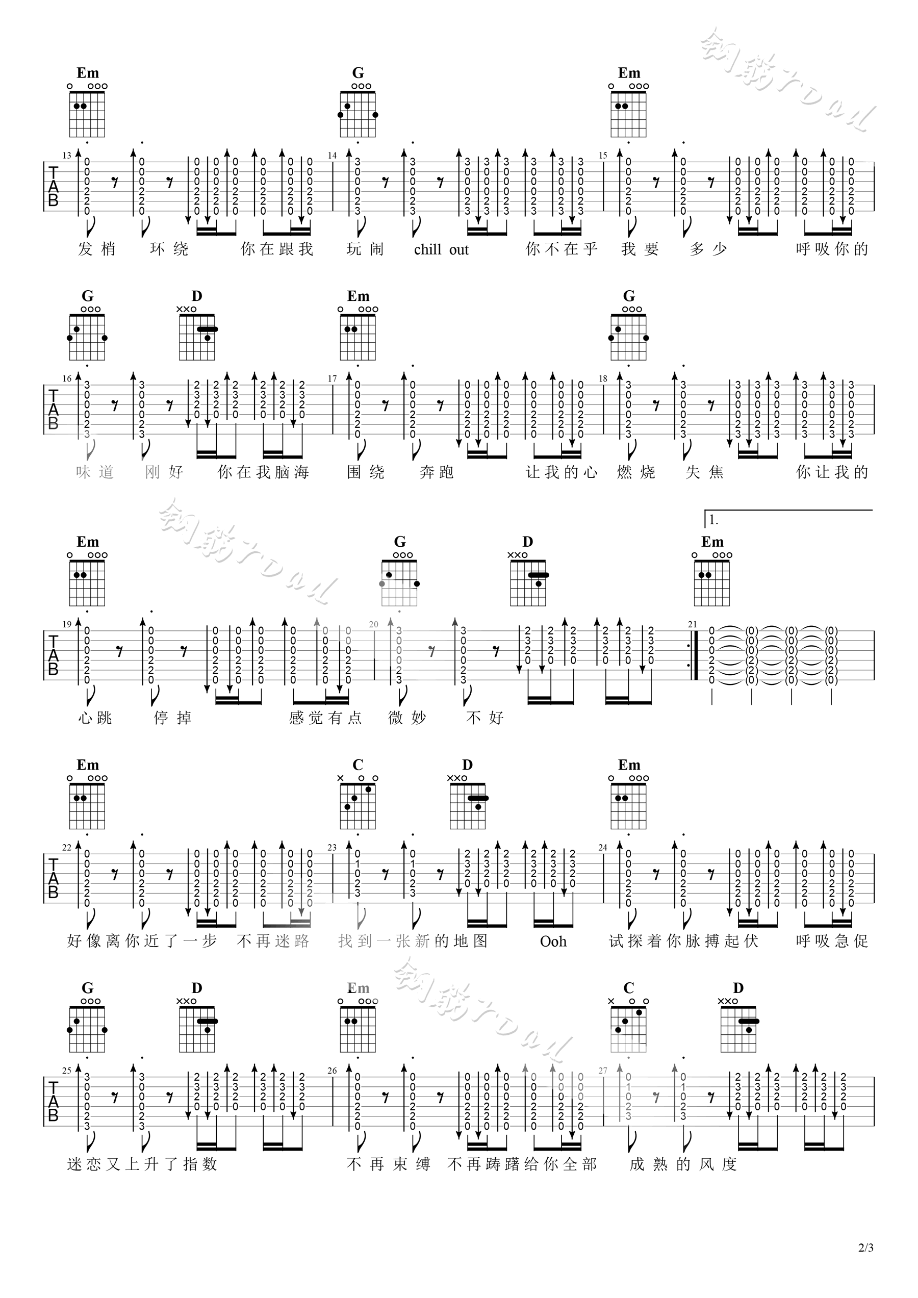 - 渐冷吉他谱_雪二《渐冷》C调弹唱_原版六线谱