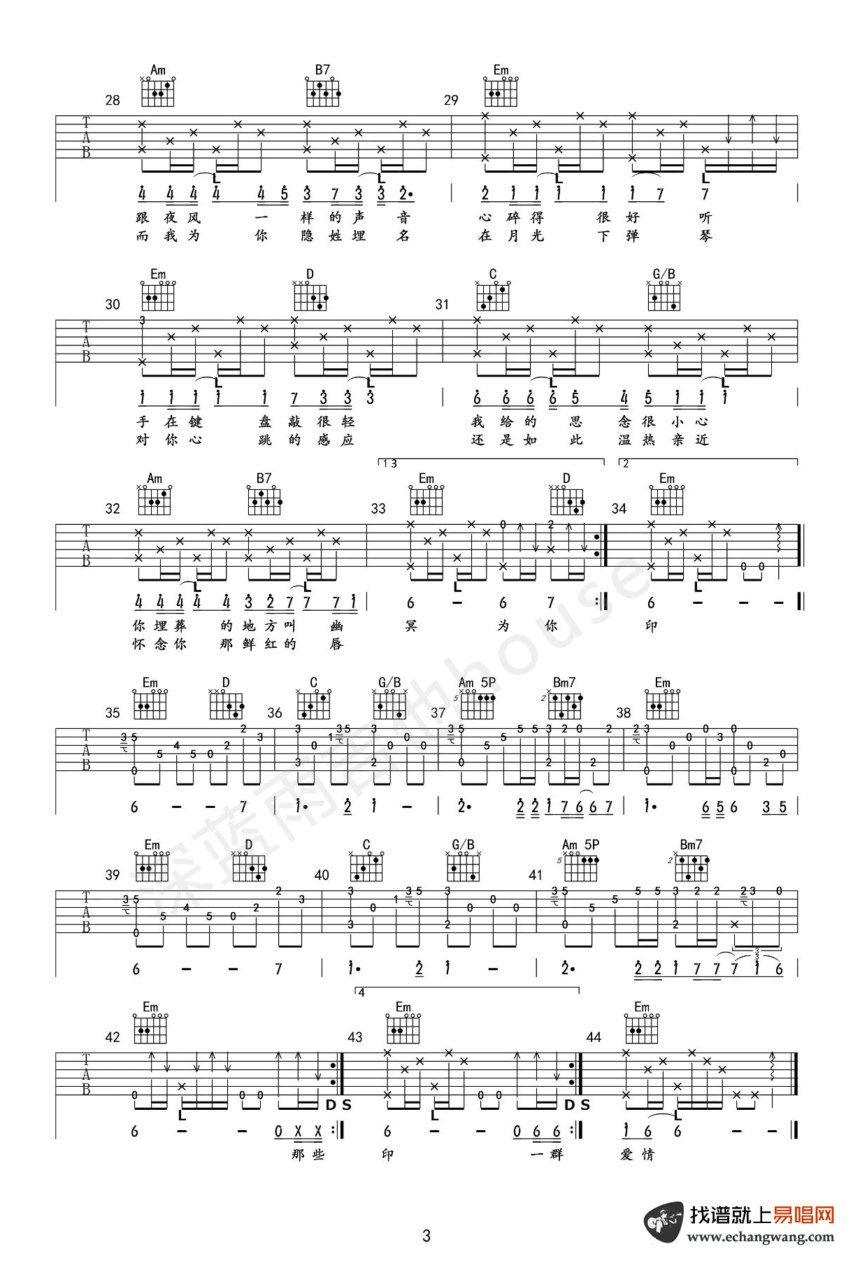 - 烟花易冷吉他谱C调_周杰伦《烟花易冷》弹唱六线谱