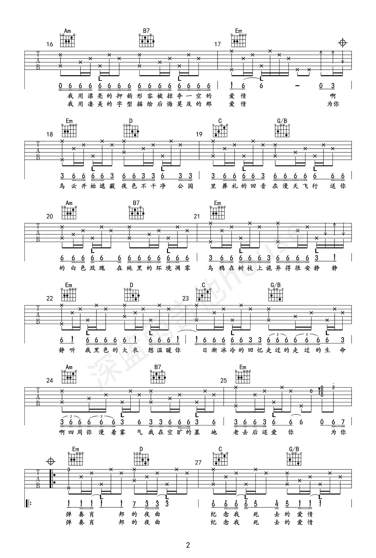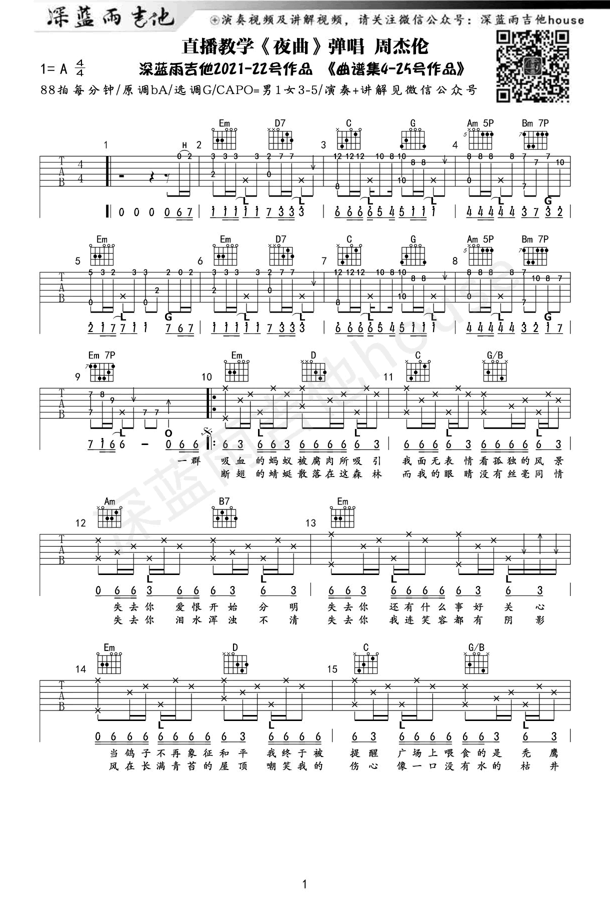 - 夜曲吉他谱_周杰伦_G调弹唱谱_吉他演示教学视频