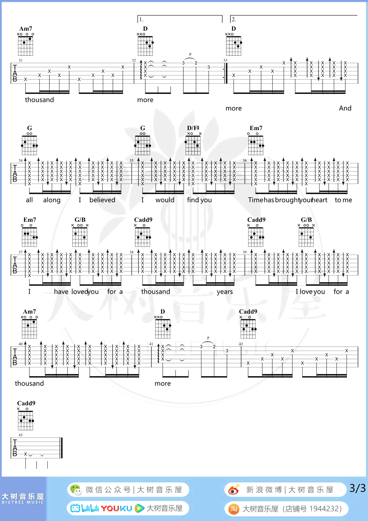 - A Thousand Years吉他谱_分解+扫弦_弹唱教学视频