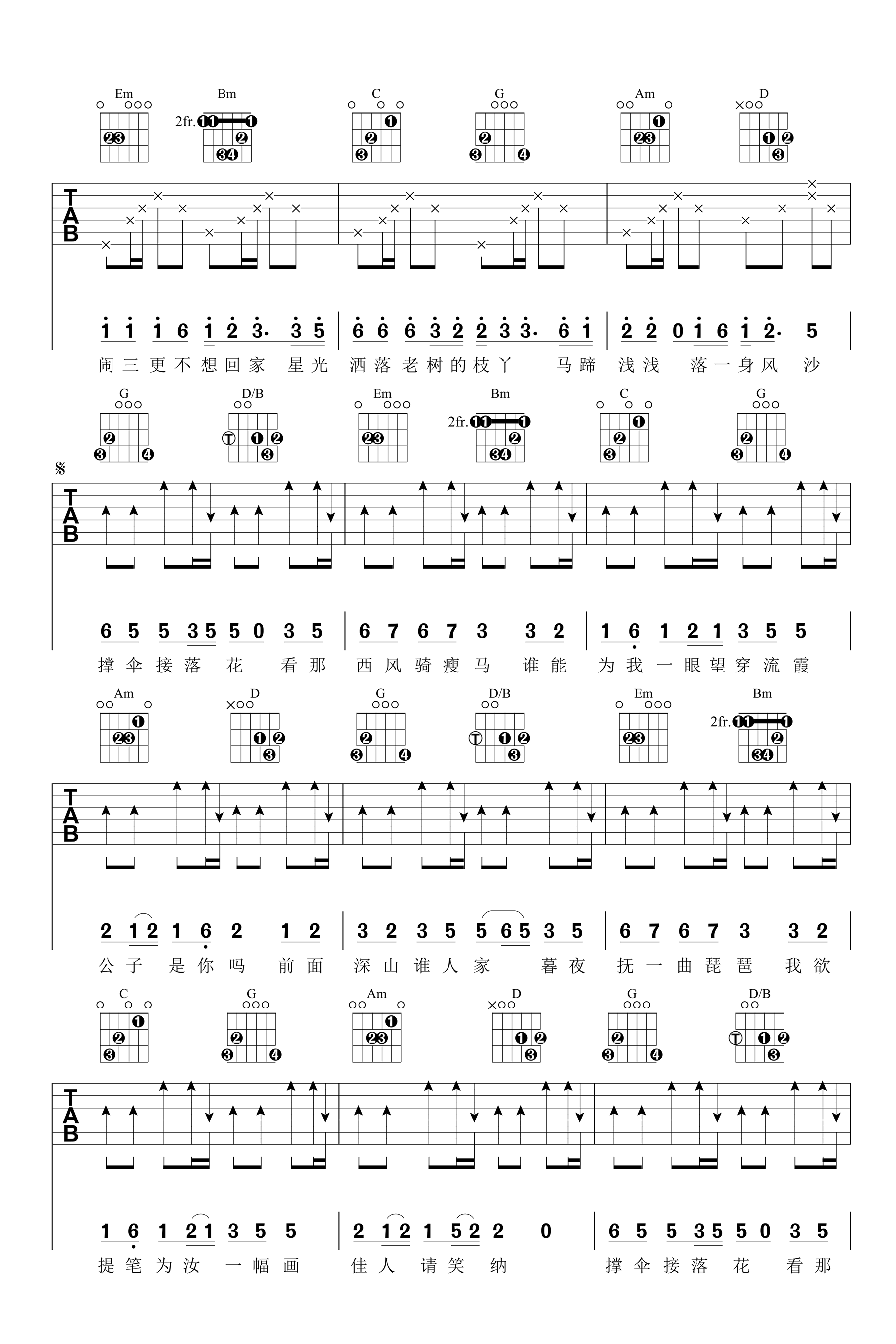 笑纳吉他谱,花僮演唱的一首网络热门古风歌曲,笑纳吉他弹唱谱,G调指法,完整版共四张高清图片谱,易唱网整理分享,感谢老何制谱出品。词意古风悠然,曲境温婉清新,旋律动听优美,国粤语自然流转,一首不能错过的无论听多少遍都会上头的神曲。