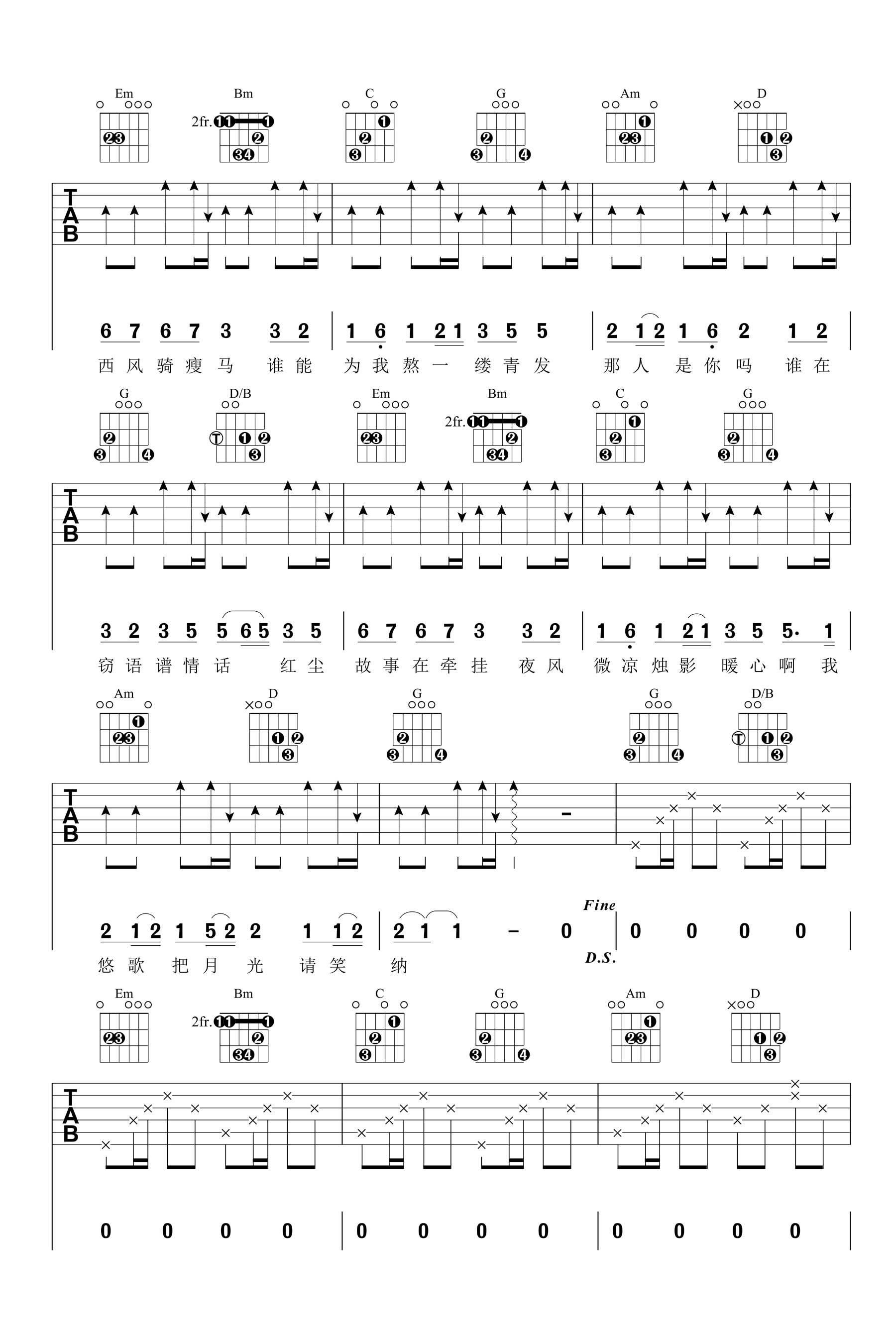 - 不如吉他谱_秦海清_G调弹唱谱_高清原版六线谱