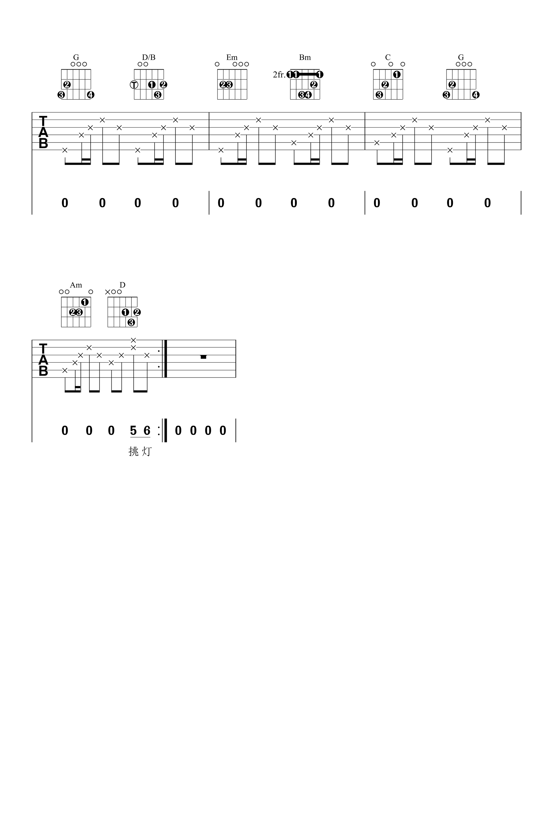 - 雾里吉他谱_C调弹唱谱_姚六一高清六线谱