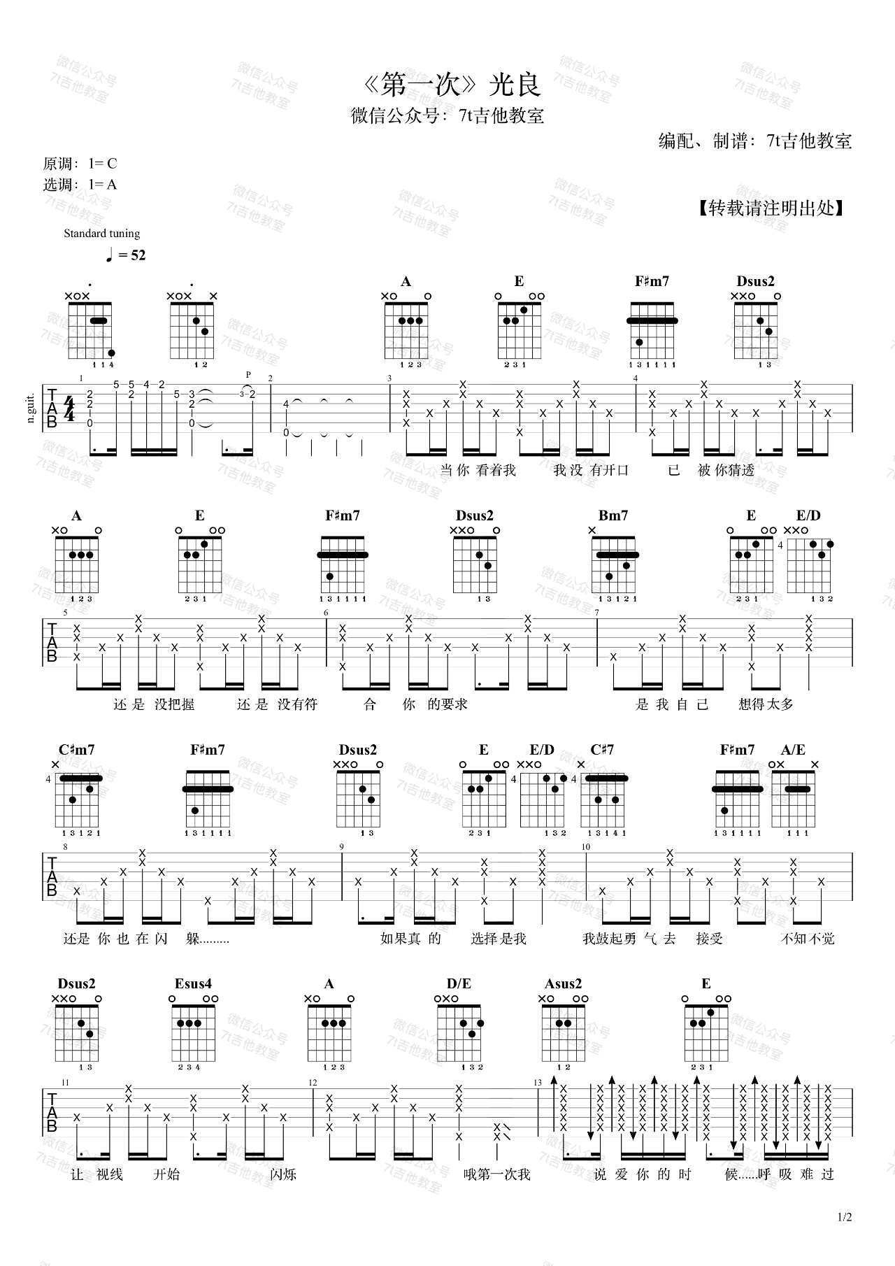 - 第一次吉他谱_光良_和弦分析_弹唱演示视频