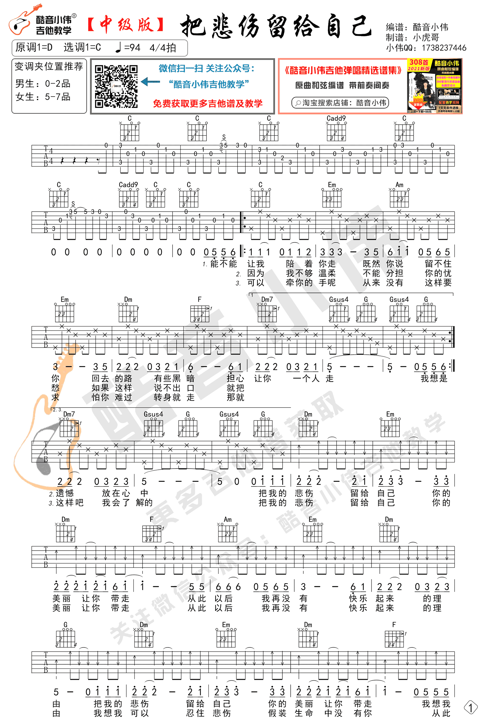 - 把悲伤留给自己吉他谱_陈升_C调中级版_弹唱教学视频