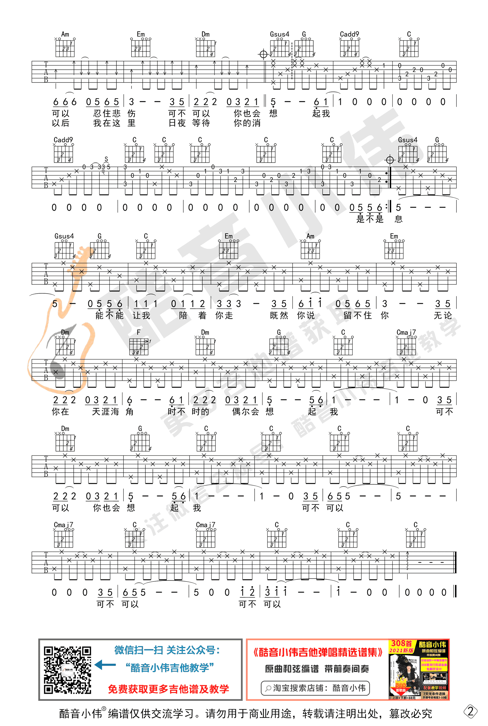 - 爱人错过吉他谱_告五人_C调原版_弹唱六线谱