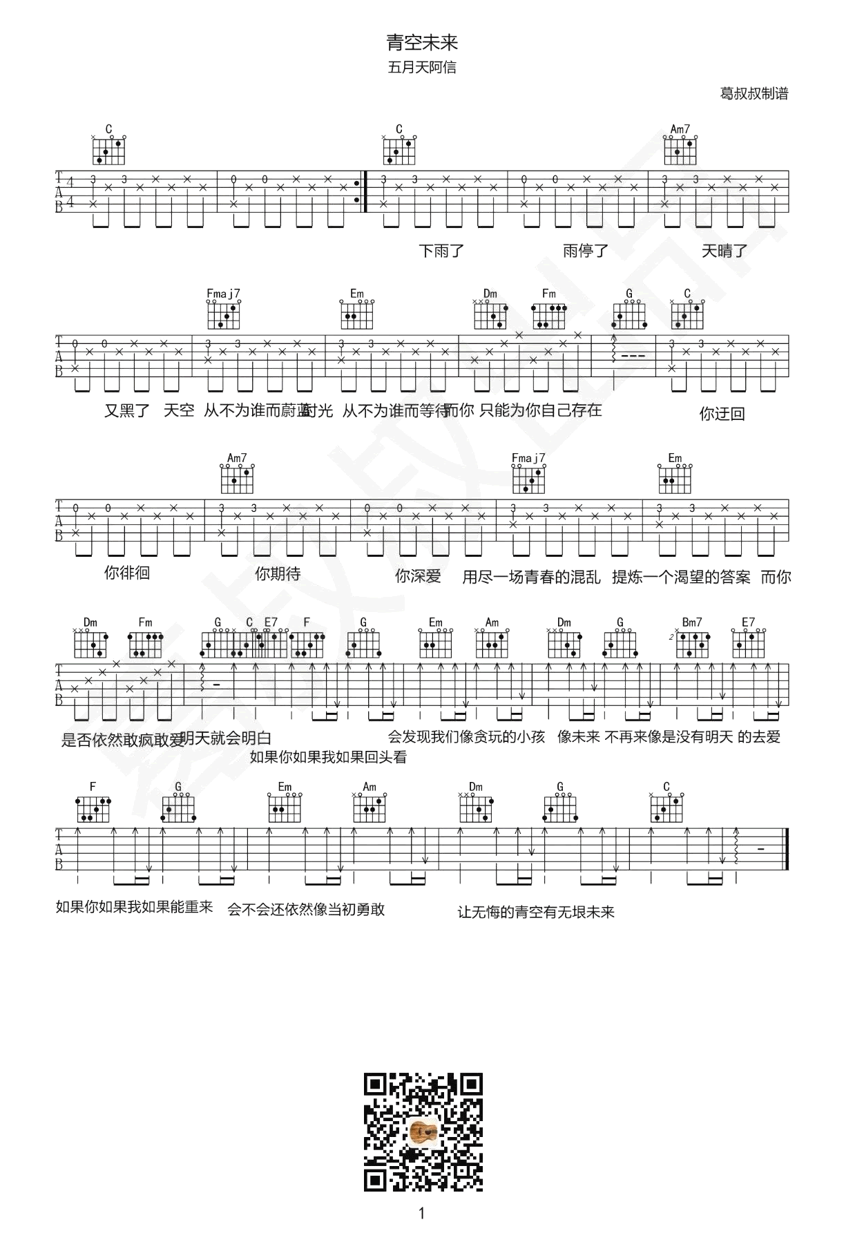 - 青空未来吉他谱_五月天阿信_C调弹唱谱_《盛夏未来》主题曲