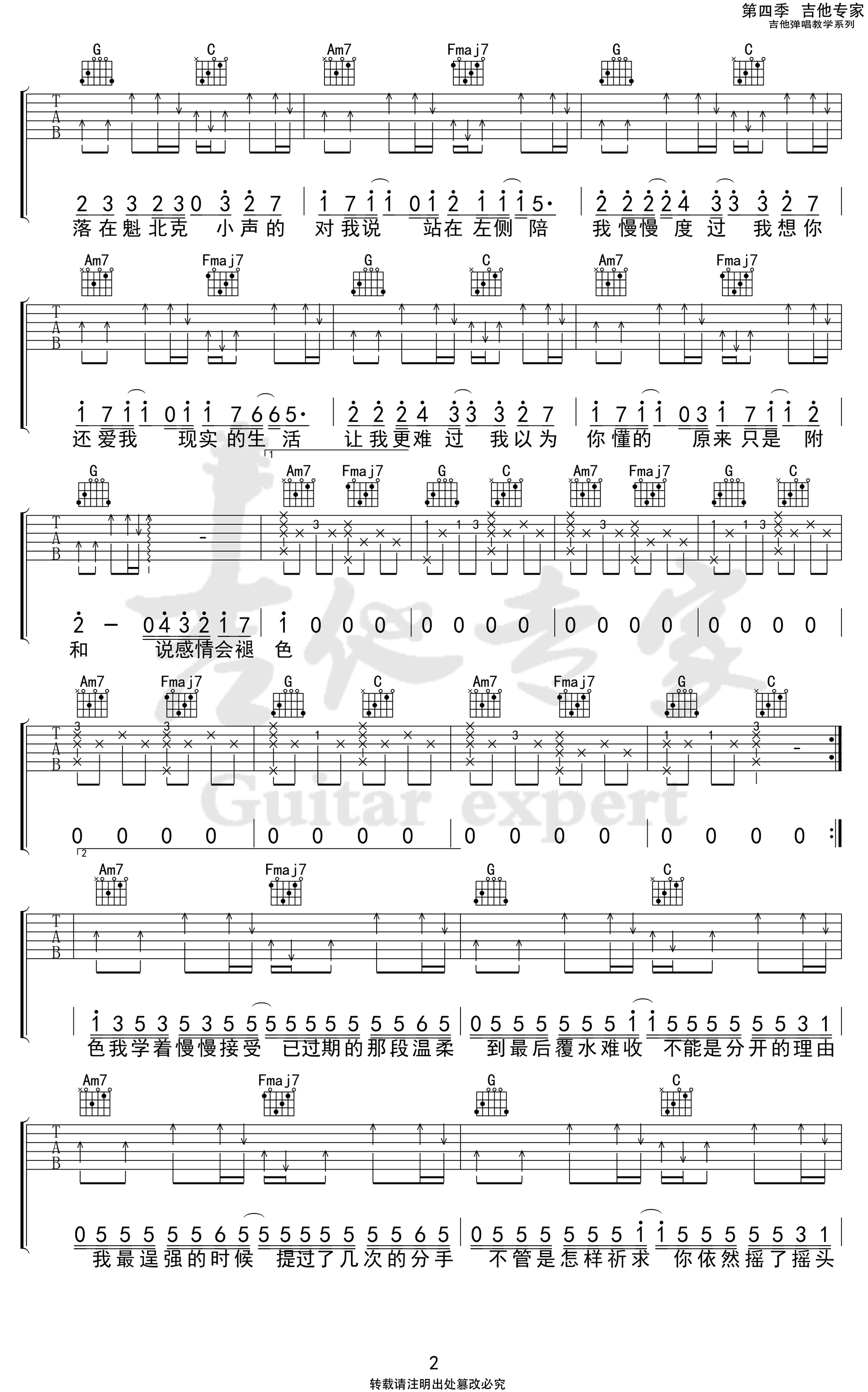 - 渐冷吉他谱_雪二《渐冷》C调弹唱_原版六线谱