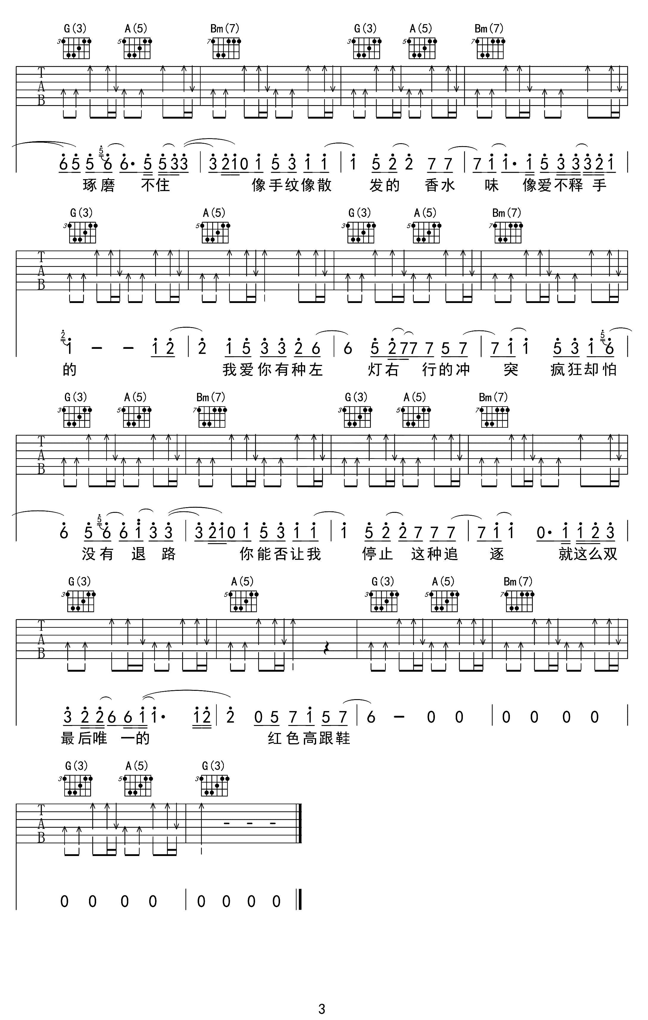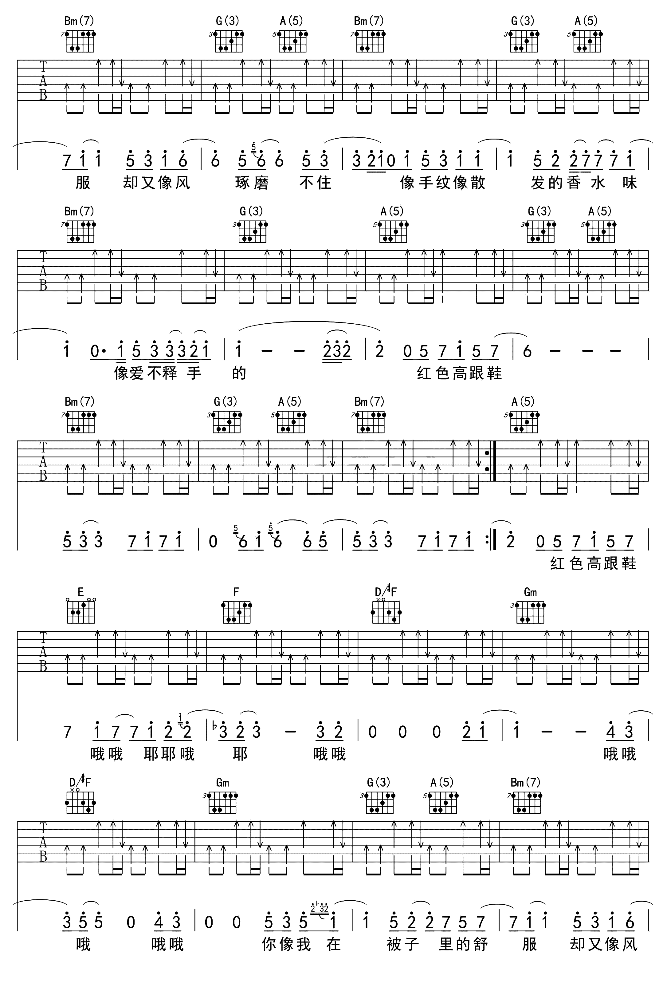 - 红色高跟鞋吉他谱 C调 蔡健雅 高清弹唱谱